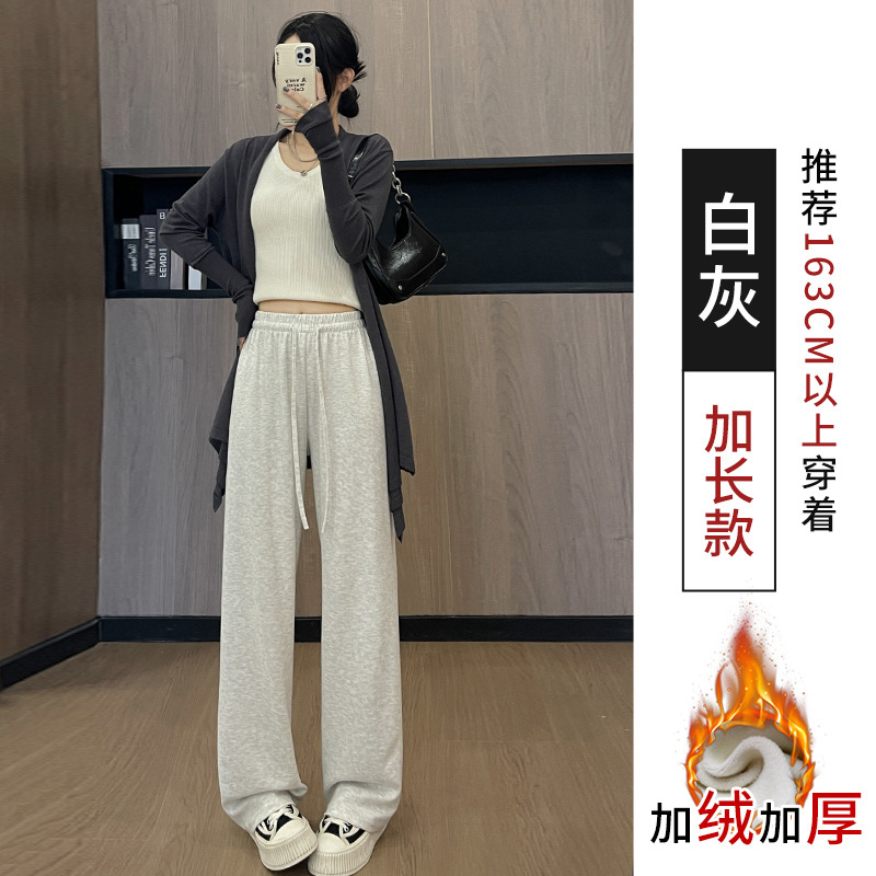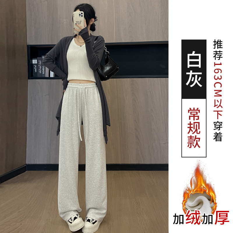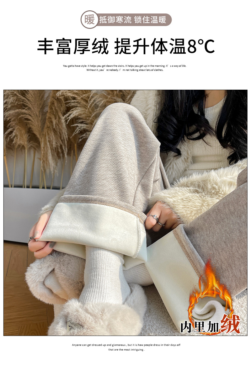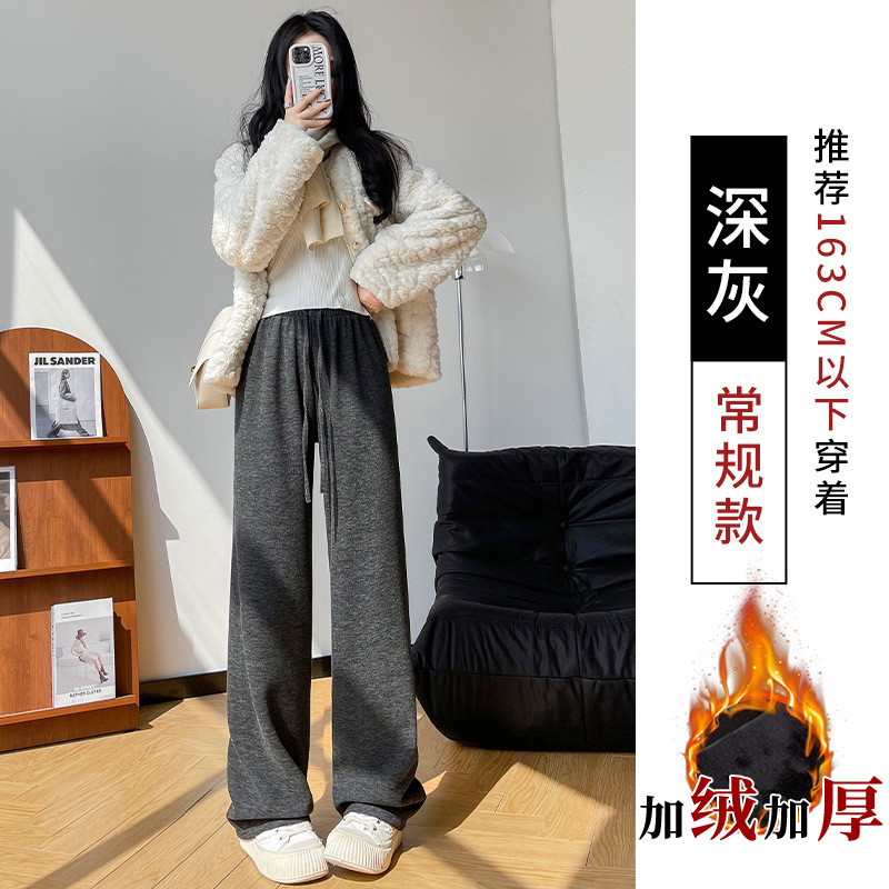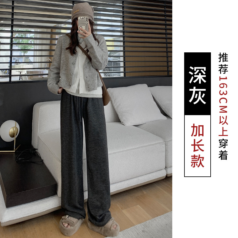 일본식 기모 찹쌀 바지 여성의 가을과 겨울 하이 웨이스트 스트레이트 좁은 캐주얼 바지 소프트 왁스 하이 웨이스트 니트 와이드 레그 팬츠스토어 가기