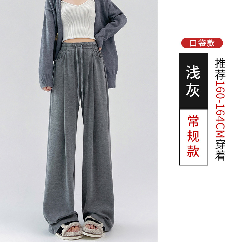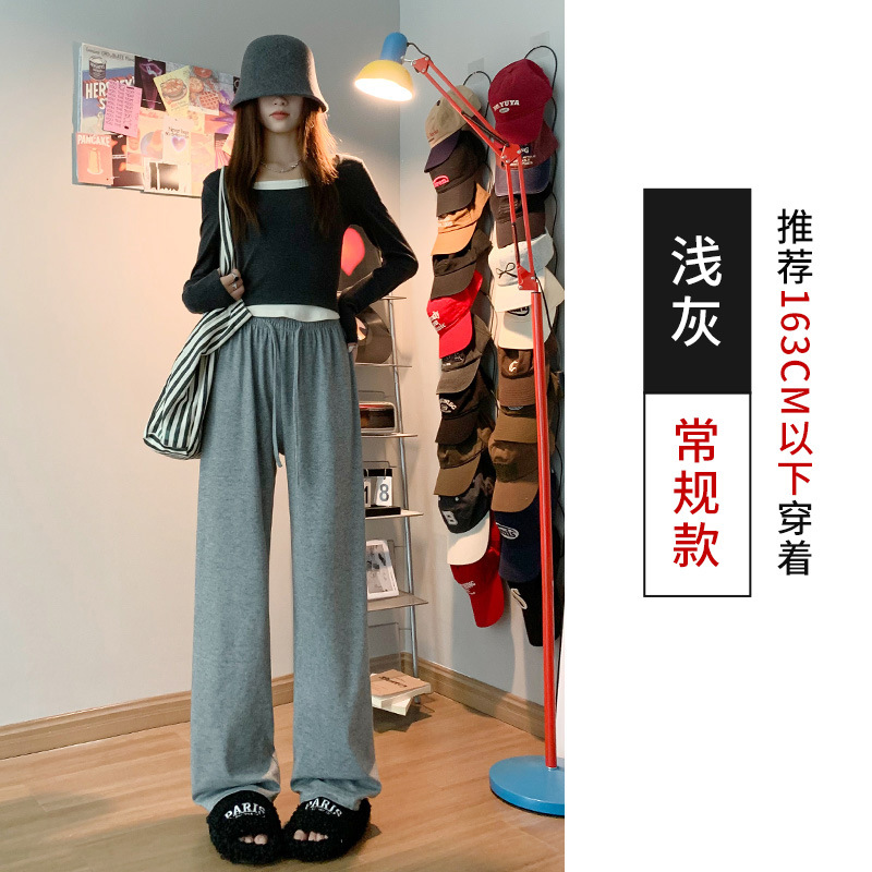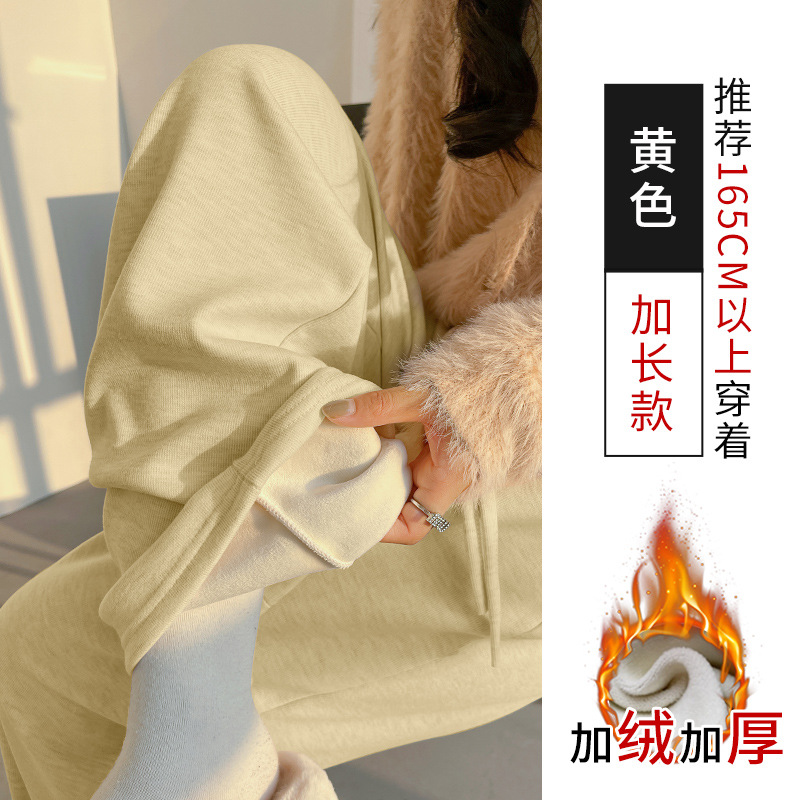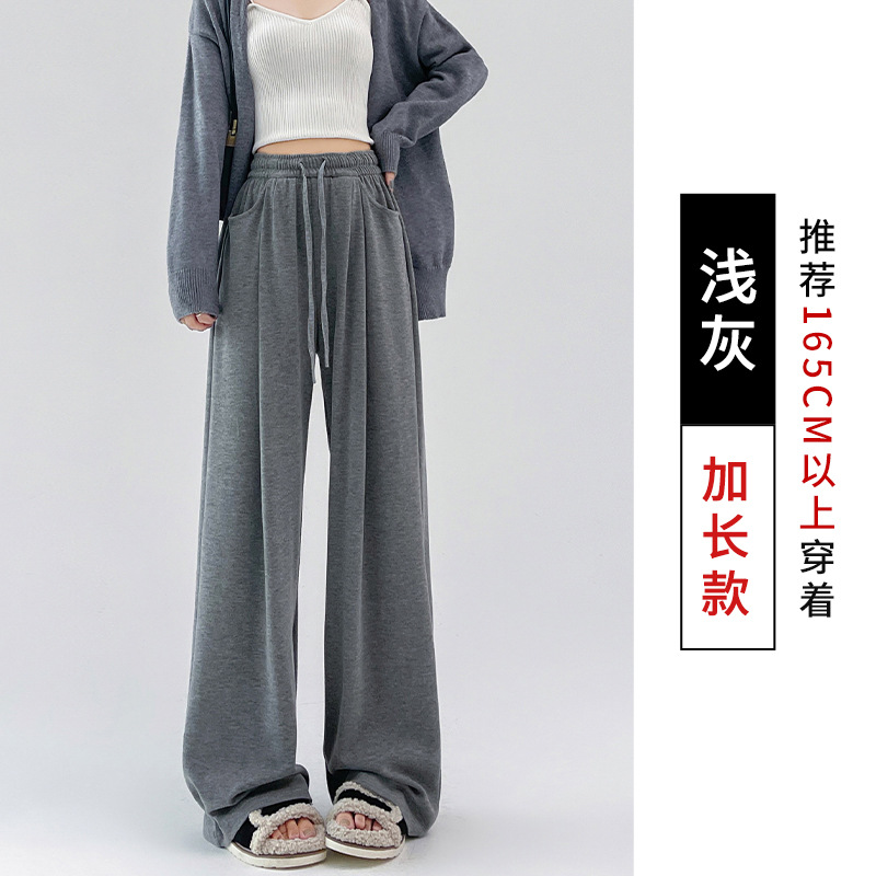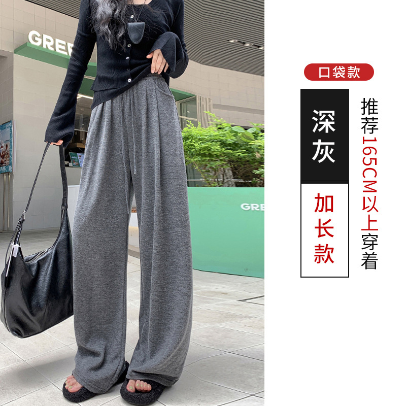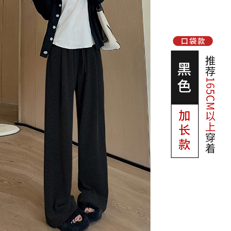일본식 기모 찹쌀 바지 여성의 가을과 겨울 하이 웨이스트 스트레이트 좁은 캐주얼 바지 소프트 왁스 하이 웨이스트 니트 와이드 레그 팬츠스토어 가기