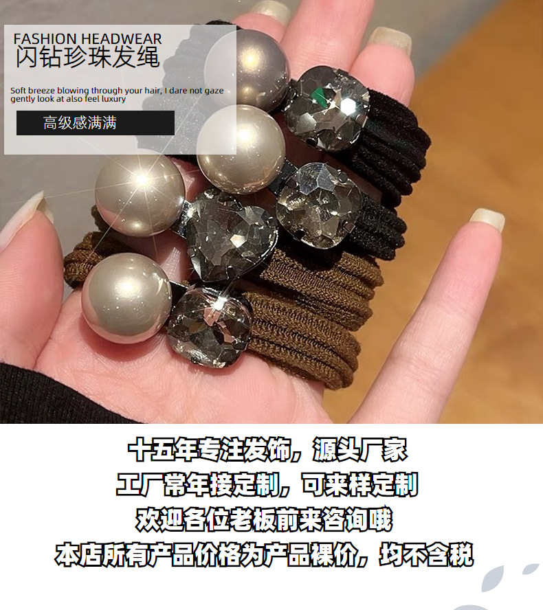 새로운 한국 스타일 간단한 절묘한 플래시 다이아몬드 진주 헤어 로프 모든 매치 높은 탄성 원활한 헤어 폰다 헤어 링 여성