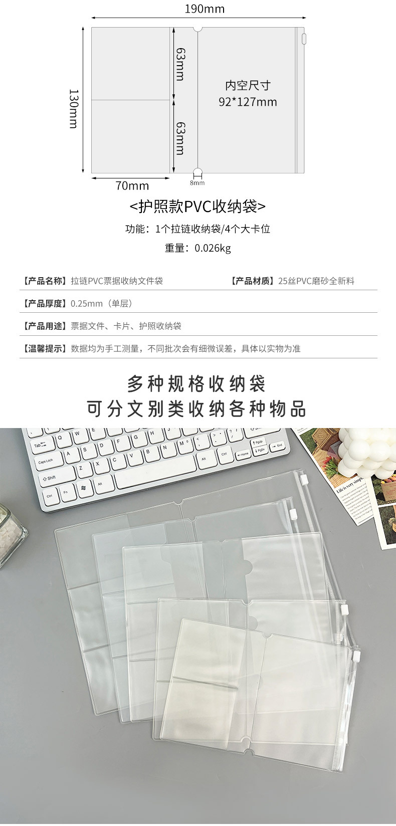 공장 직공급 장부 특수 액세서리 투명 젖빛 PVC 여권 보관 가방 카드 가방 티켓 가방 지퍼 가방