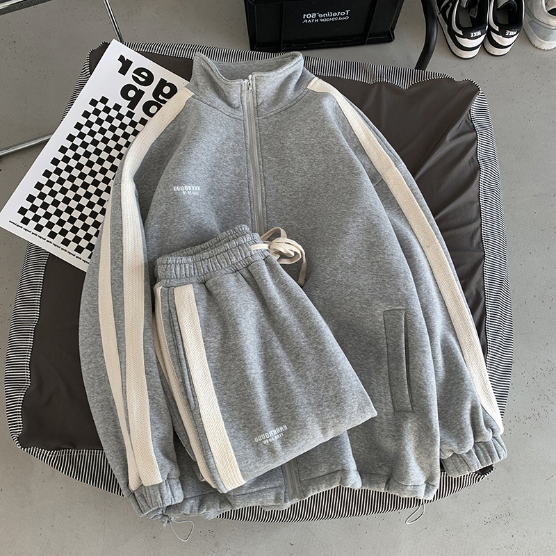 홍콩 스타일 프라이드 스트리트 세트 봄과 가을 느슨한 유행 스웨터 긴팔 바지 캐주얼 학생 스포츠웨어 남성용 투피스 세트