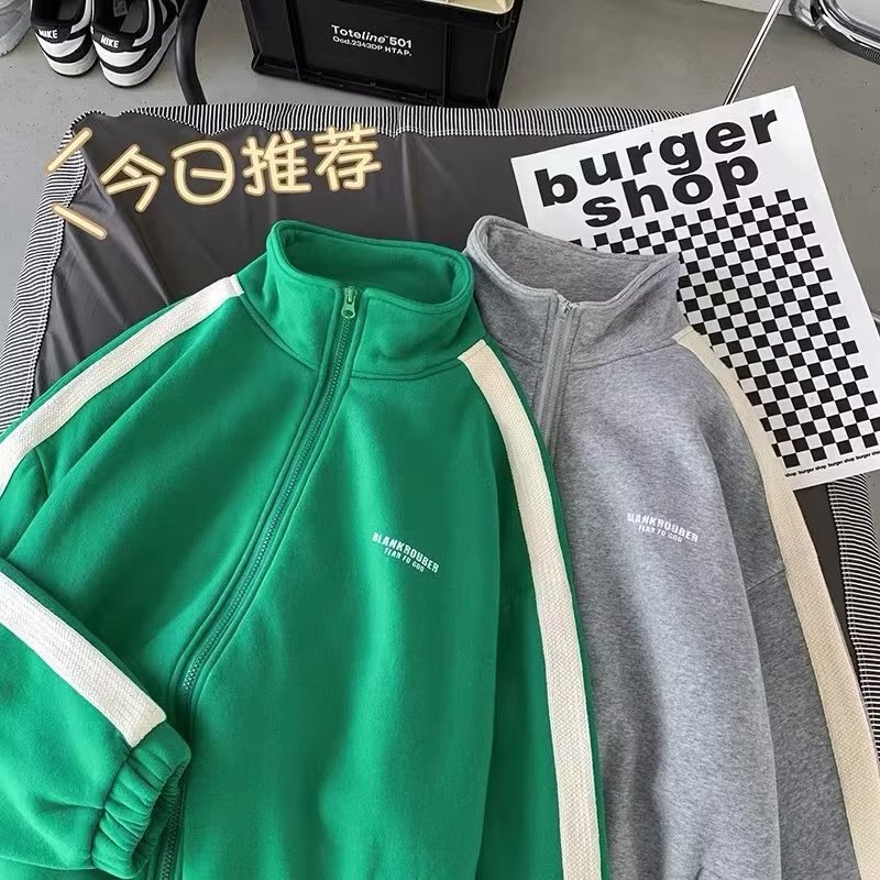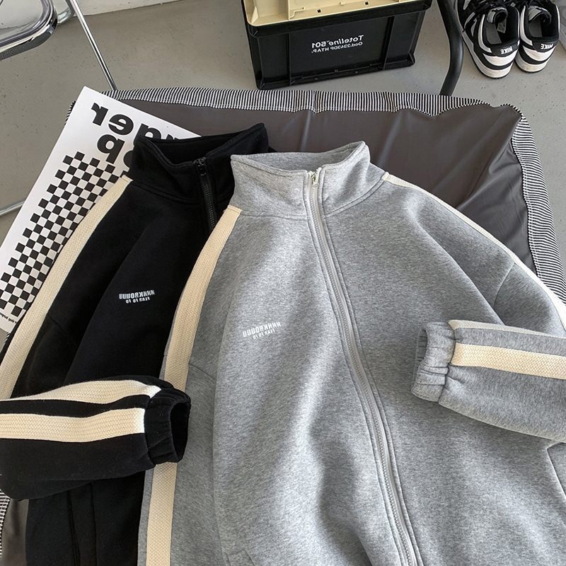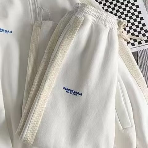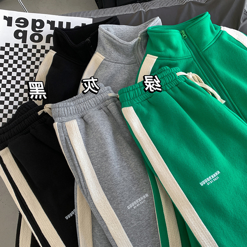 홍콩 스타일 프라이드 스트리트 세트 봄과 가을 느슨한 유행 스웨터 긴팔 바지 캐주얼 학생 스포츠웨어 남성용 투피스 세트스토어 가기