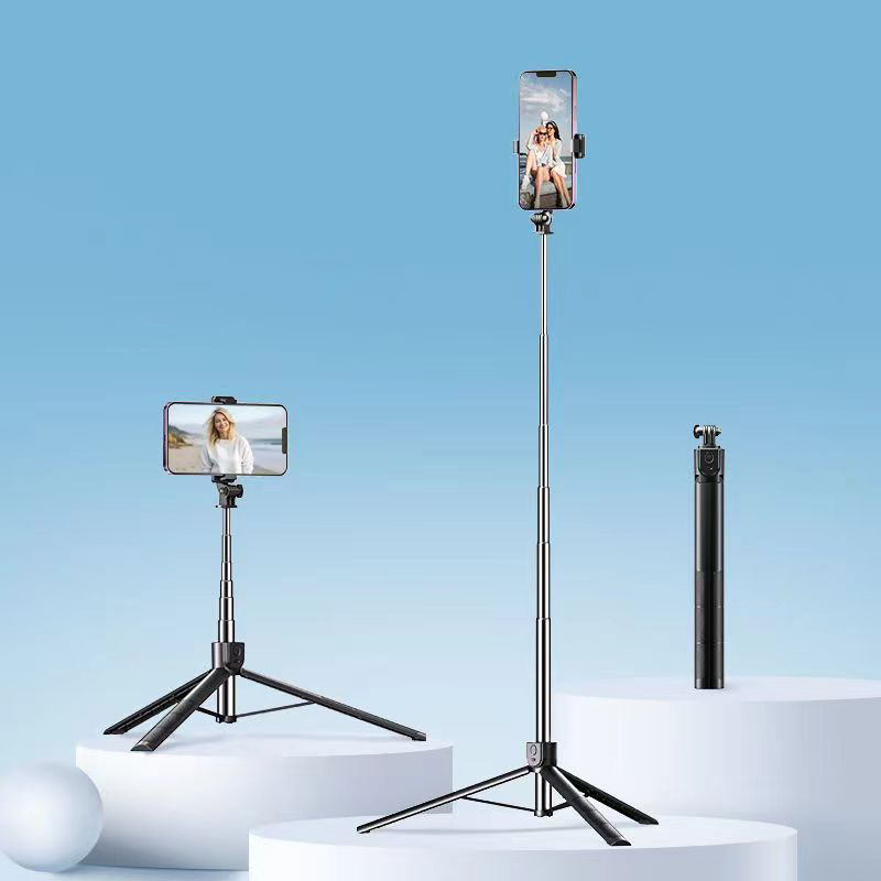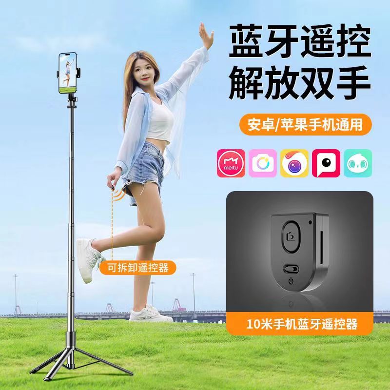새로운 셀카봉 삼각대 라이브 방송 사진 여행 휴대용 셀카봉 1.7m 텔레스코픽 블루투스 셀카봉