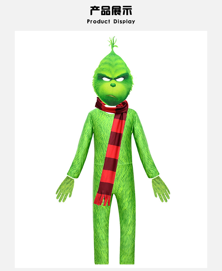 할로윈 코스프레 그린치 어린이용 원피스 타이트 의상 공연복 그린치 트렌디