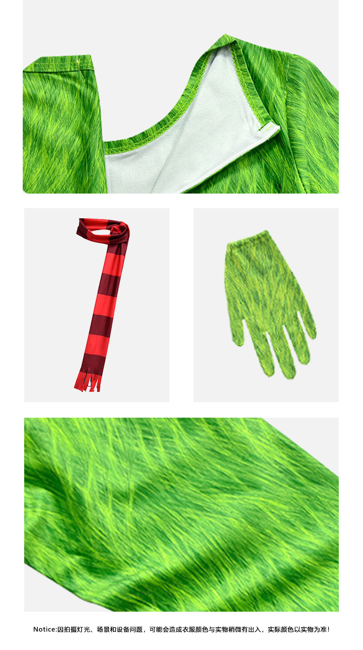 • 그린치 점프 슈트 + 마스크 + 장갑 + 스카프