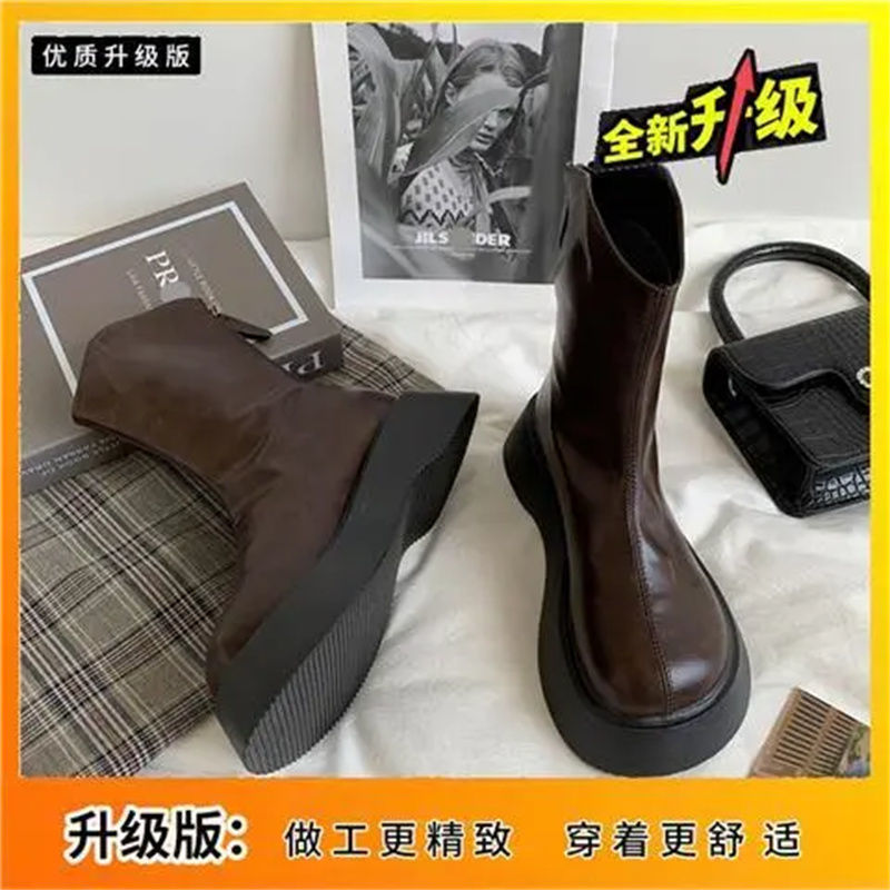 작은 조커 2022 유럽 패션 부츠 스퀘어 헤드 스커트 두꺼운 바닥 튀김 거리 증가 작은 짧은 부츠 조수스토어 가기