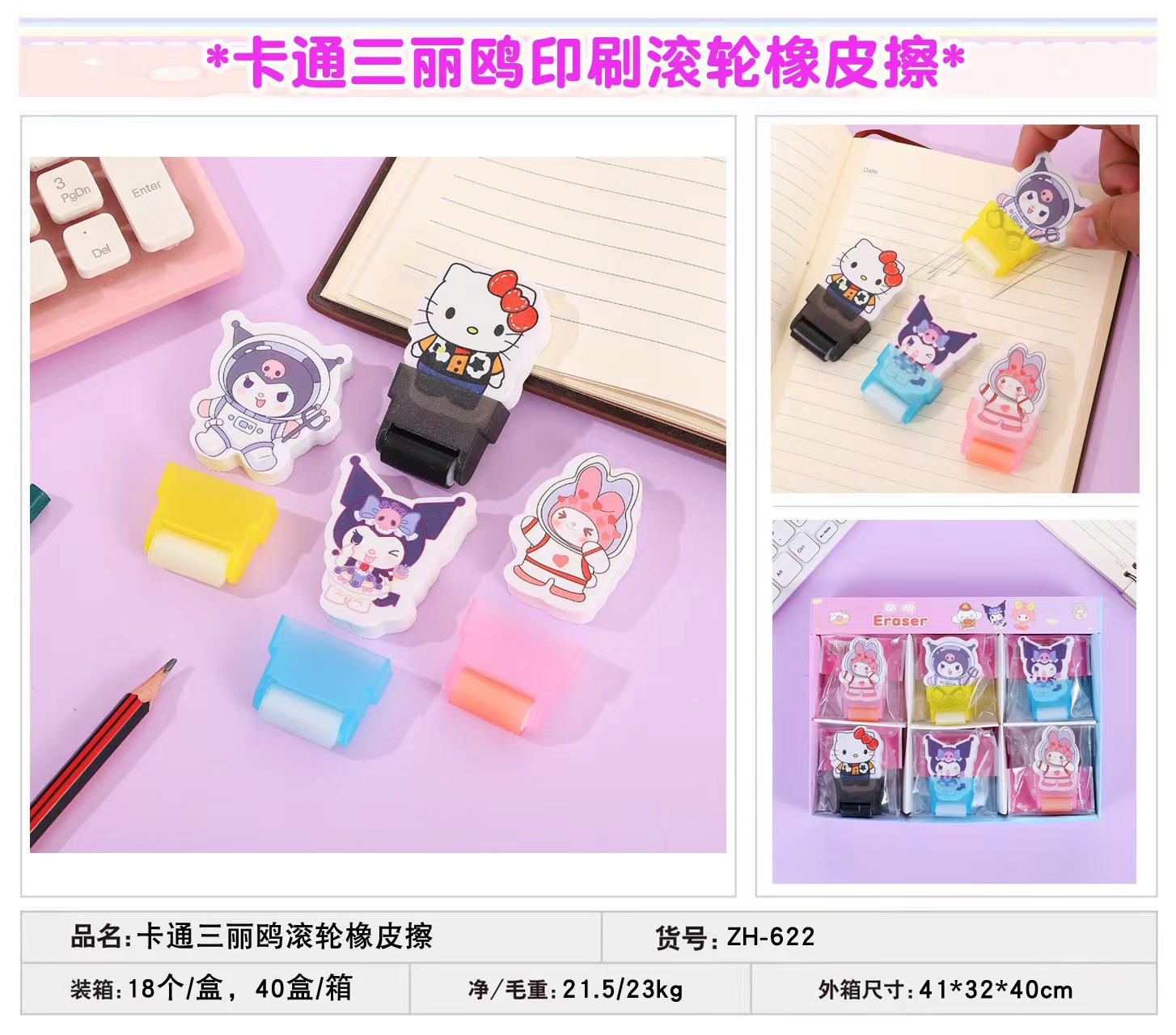 새로운 만화 산리오 모양 롤러 지우개 Kulomi 큰 귀 개 스크랩 제거 지우개 선물스토어 가기