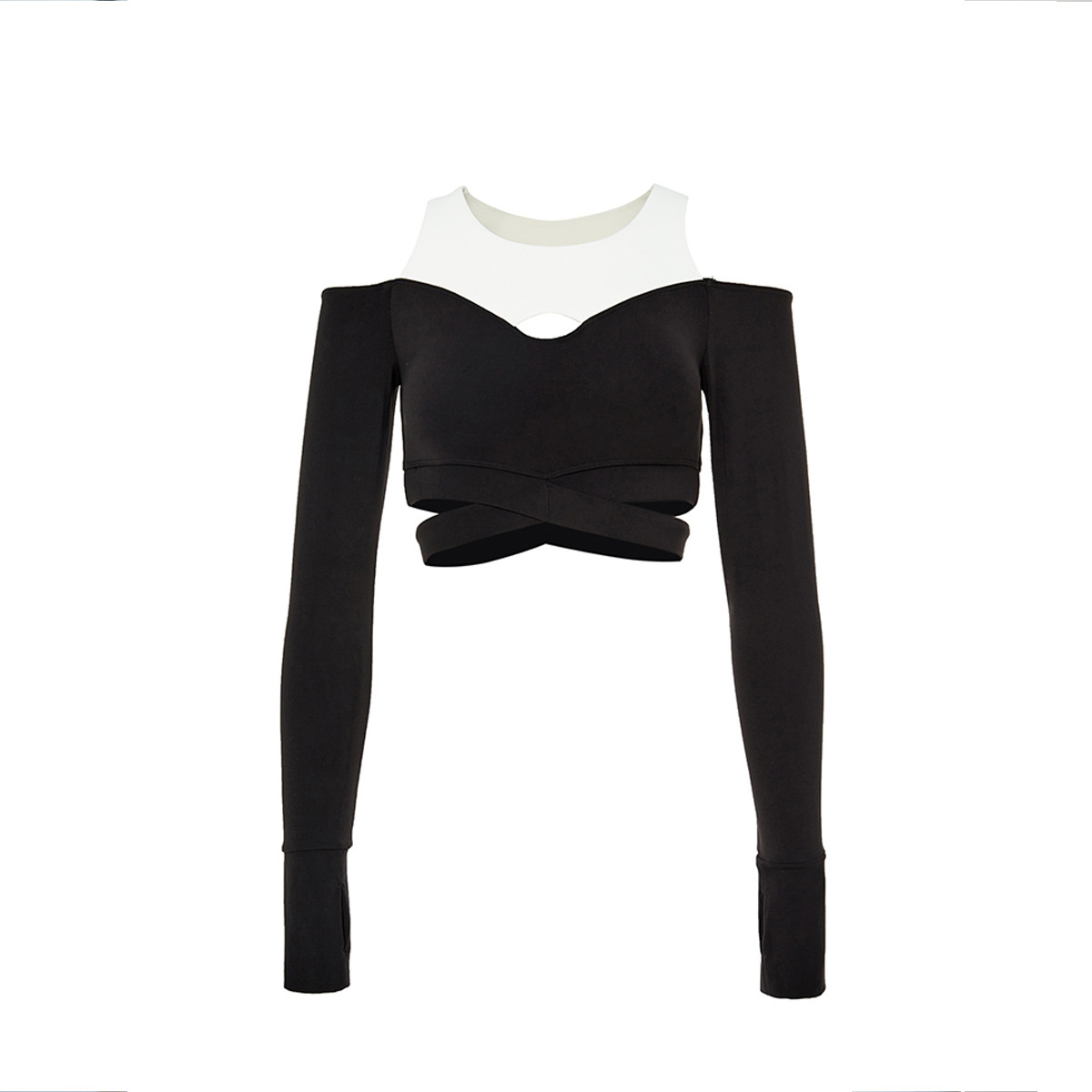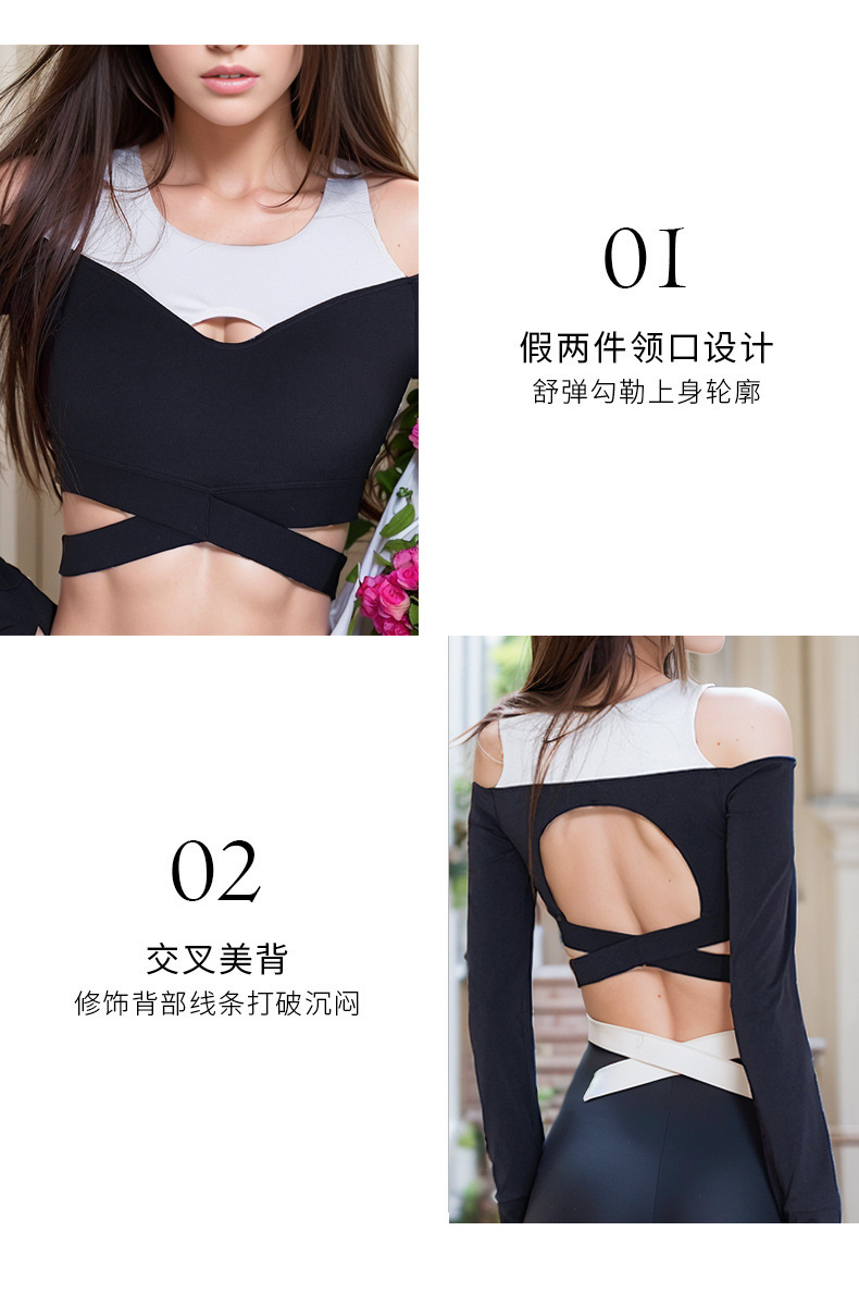 이중 레이어 스타일의 통기성 좋은 요가복, 스포츠 필라테스 피트니스 탑, 긴팔 이너웨어, 외출복으로도 활용 가능