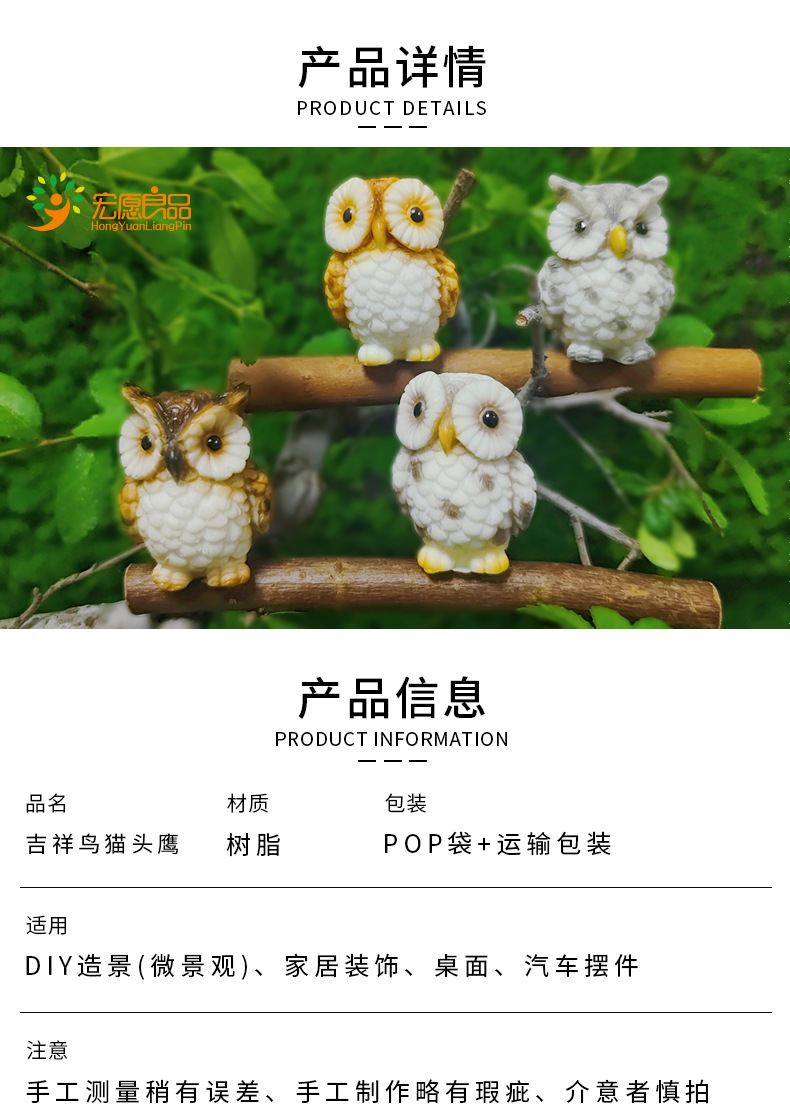 올빼미 수지 작은 장식품 마이크로 풍경 장식 조경 분재 녹색 식물 창조적 인 크로스 보더 선물 공예 이끼스토어 가기