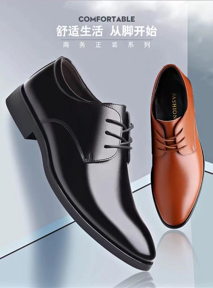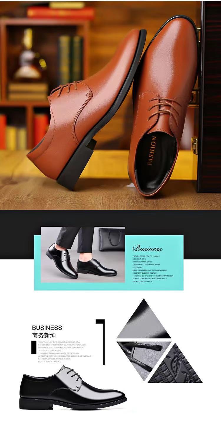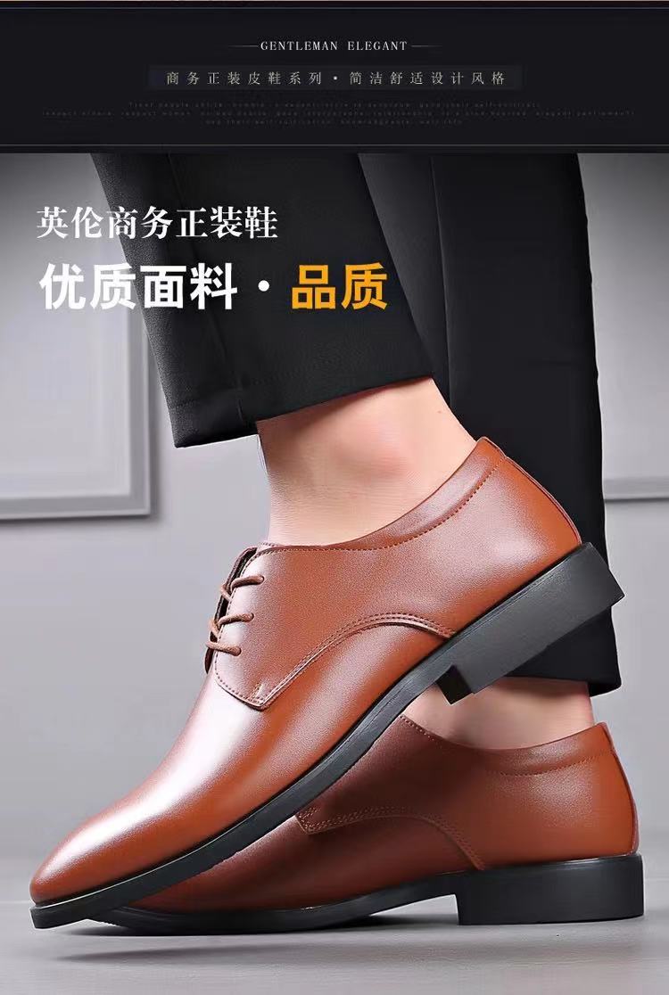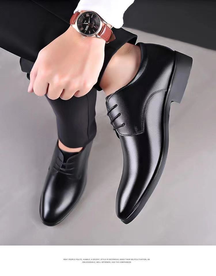 가죽 신발 청소년 영국 캐주얼 비즈니스 정장 유행 남성 신발 웨딩 신발 내부 높이 증가 단일 신발 작업 신발 방수 경량스토어 가기