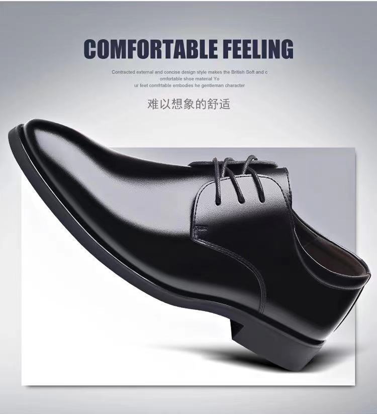 가죽 신발 청소년 영국 캐주얼 비즈니스 정장 유행 남성 신발 웨딩 신발 내부 높이 증가 단일 신발 작업 신발 방수 경량
