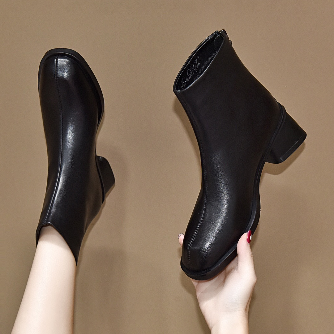 스퀘어 헤드 첼시 부츠 여성용 2023 유럽 및 미국 틈새 개성 백 지퍼 파운데이션 스트레이트 부츠 탑 레이어 소가죽 여성 부츠스토어 가기