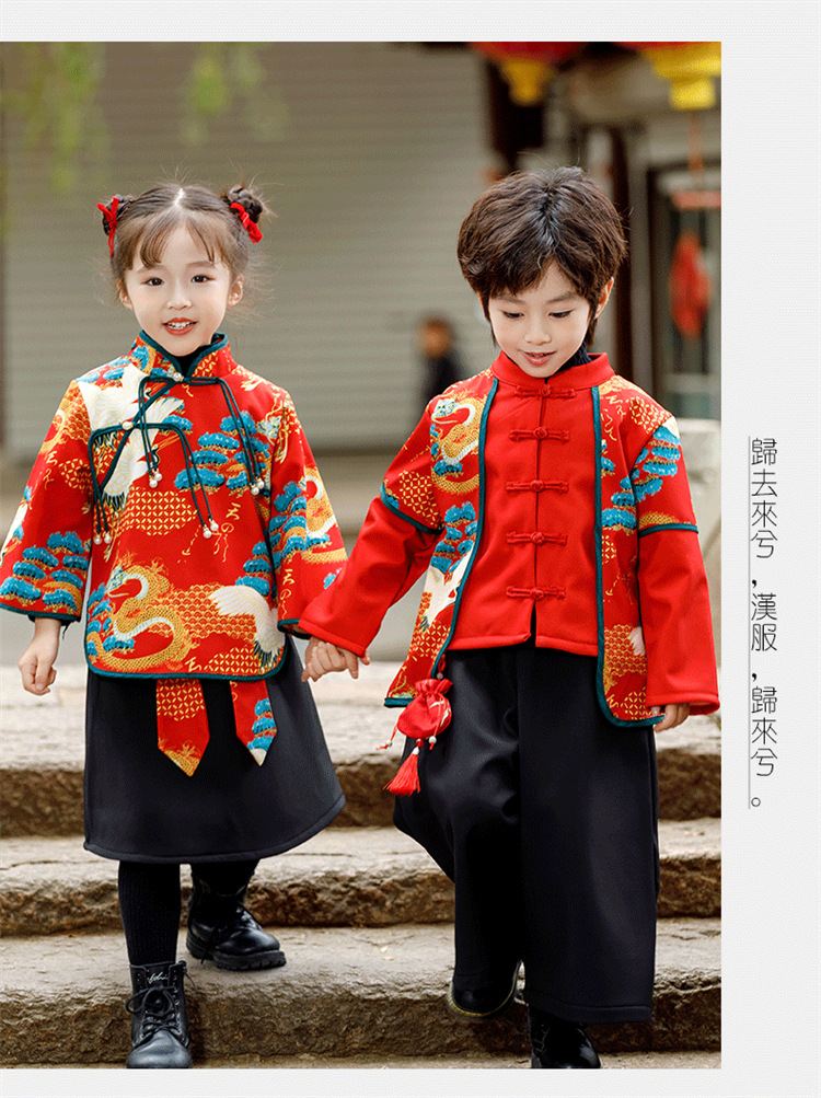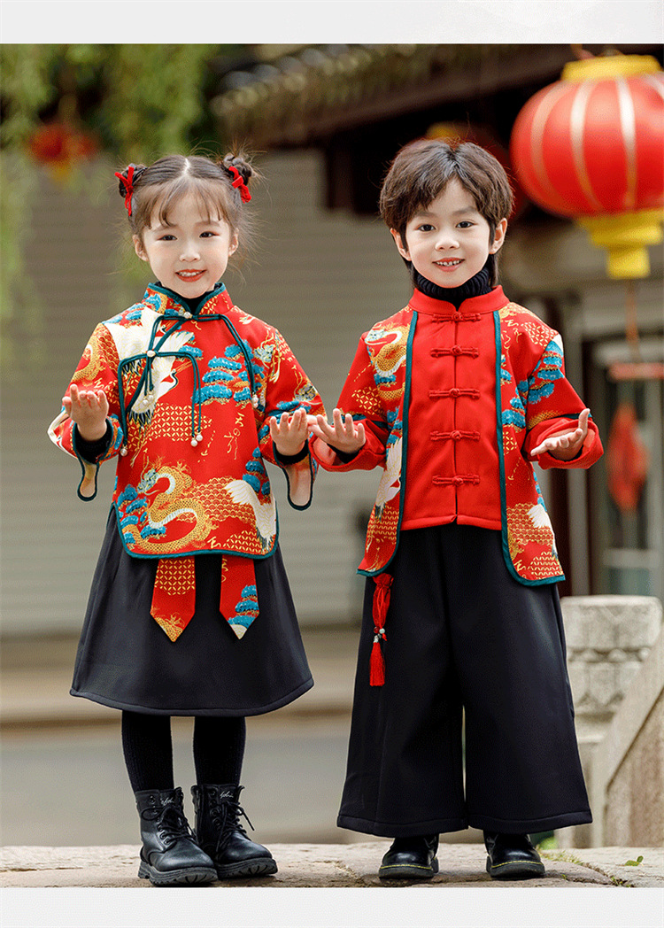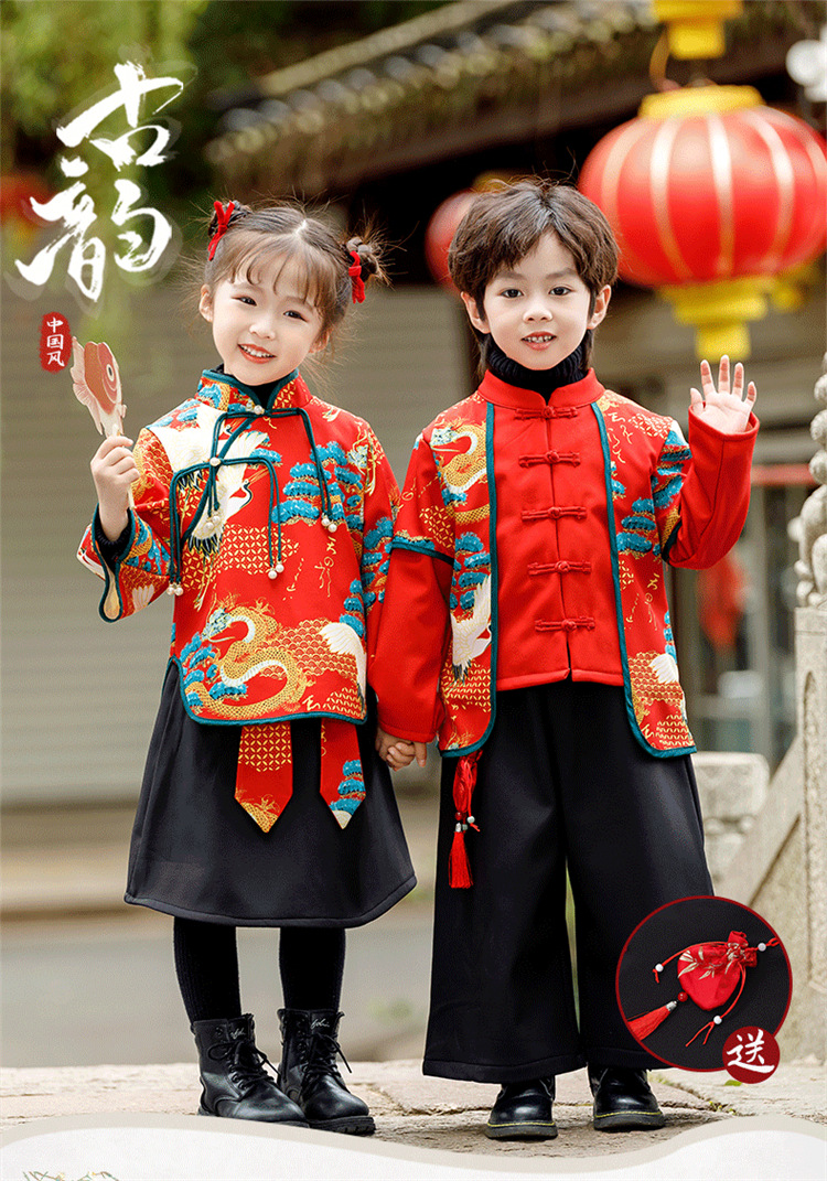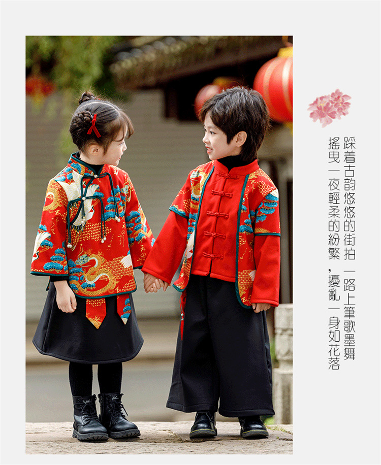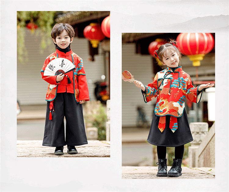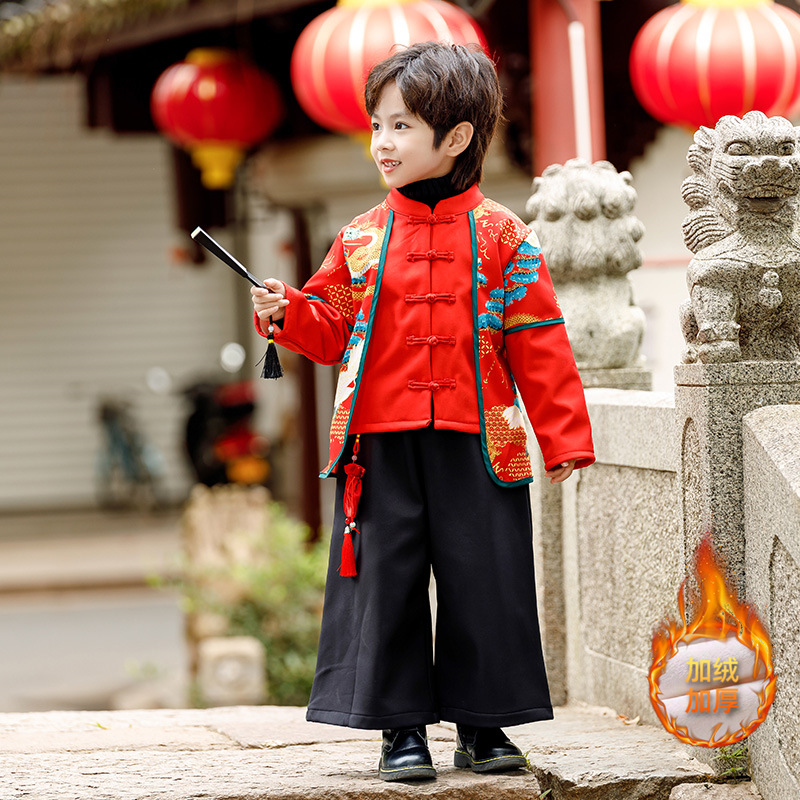 소년 소녀 가을과 겨울 당나라 세트 2023 새해 옷 기모 두꺼운 어린이 중국 스타일 축제 새 옷스토어 가기