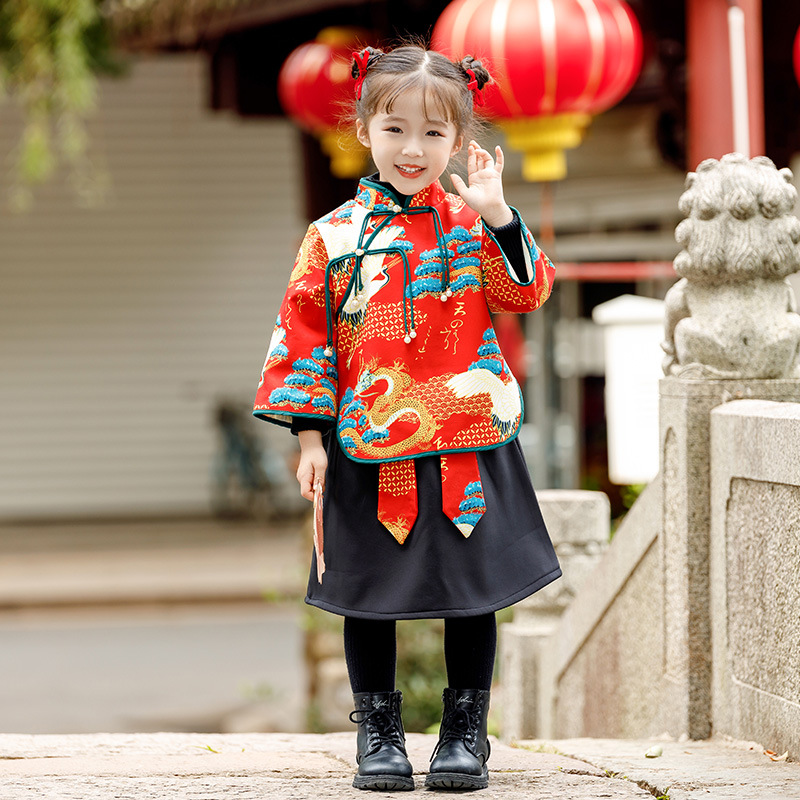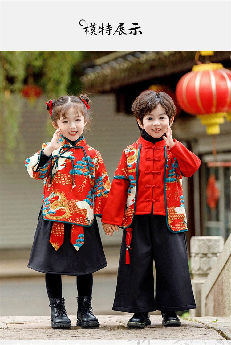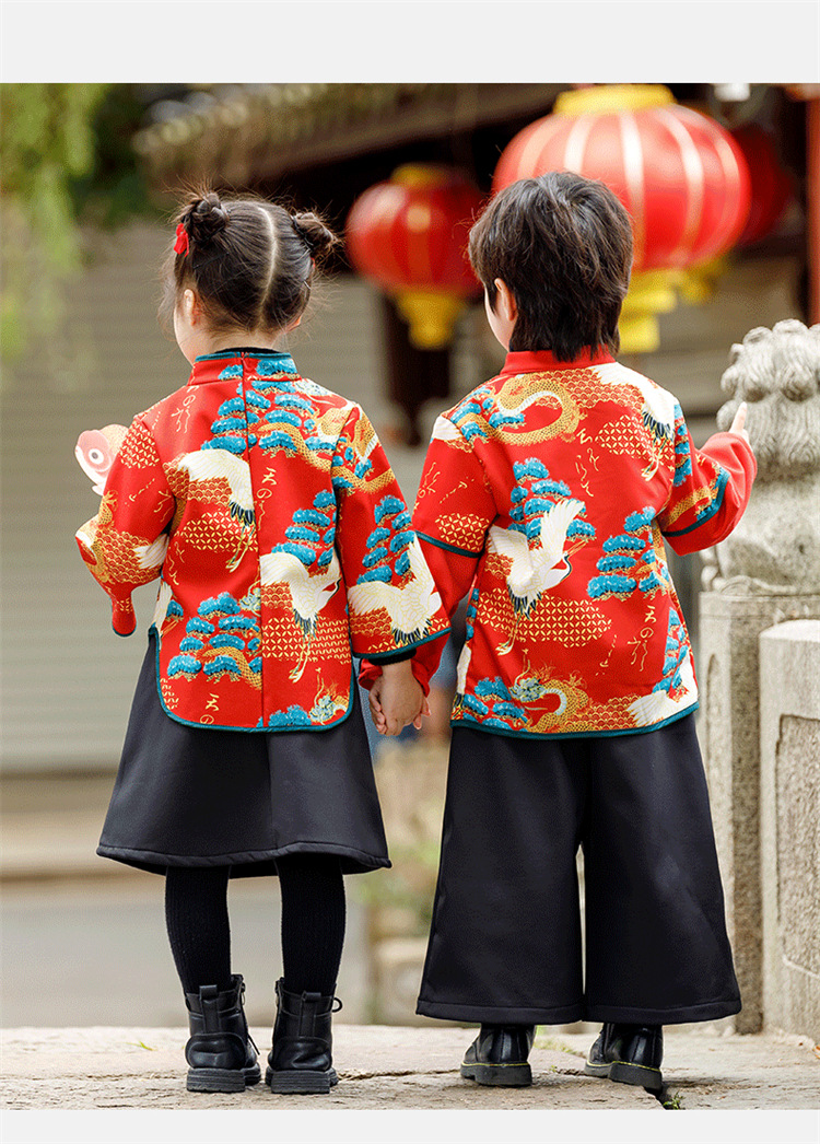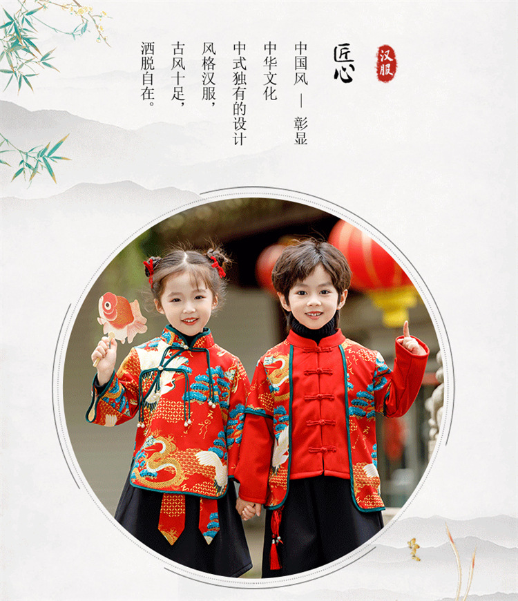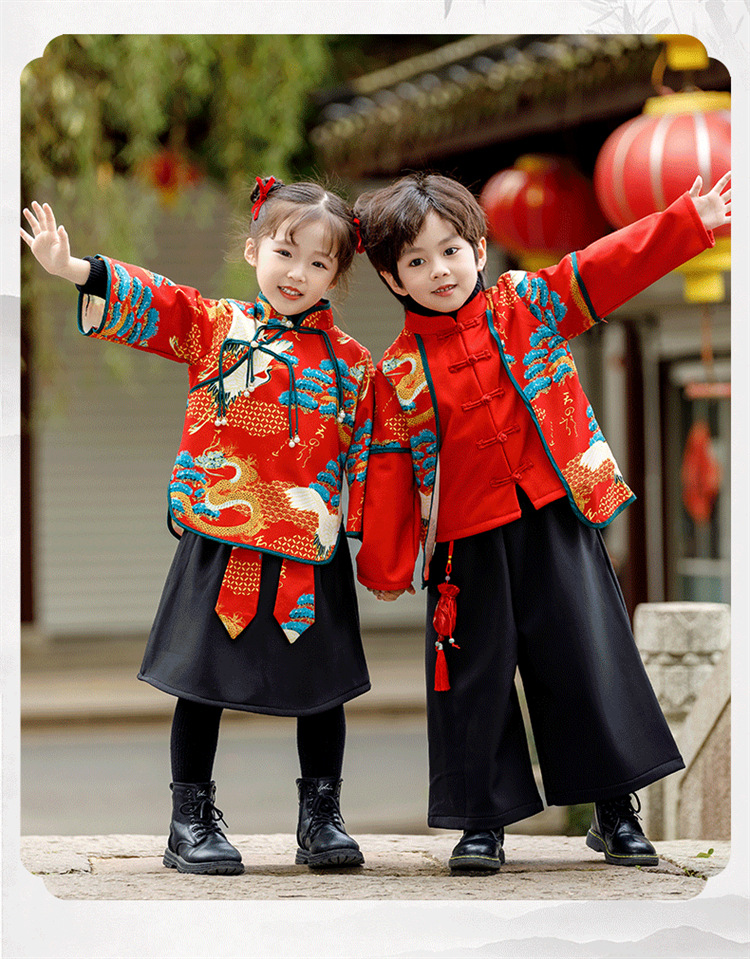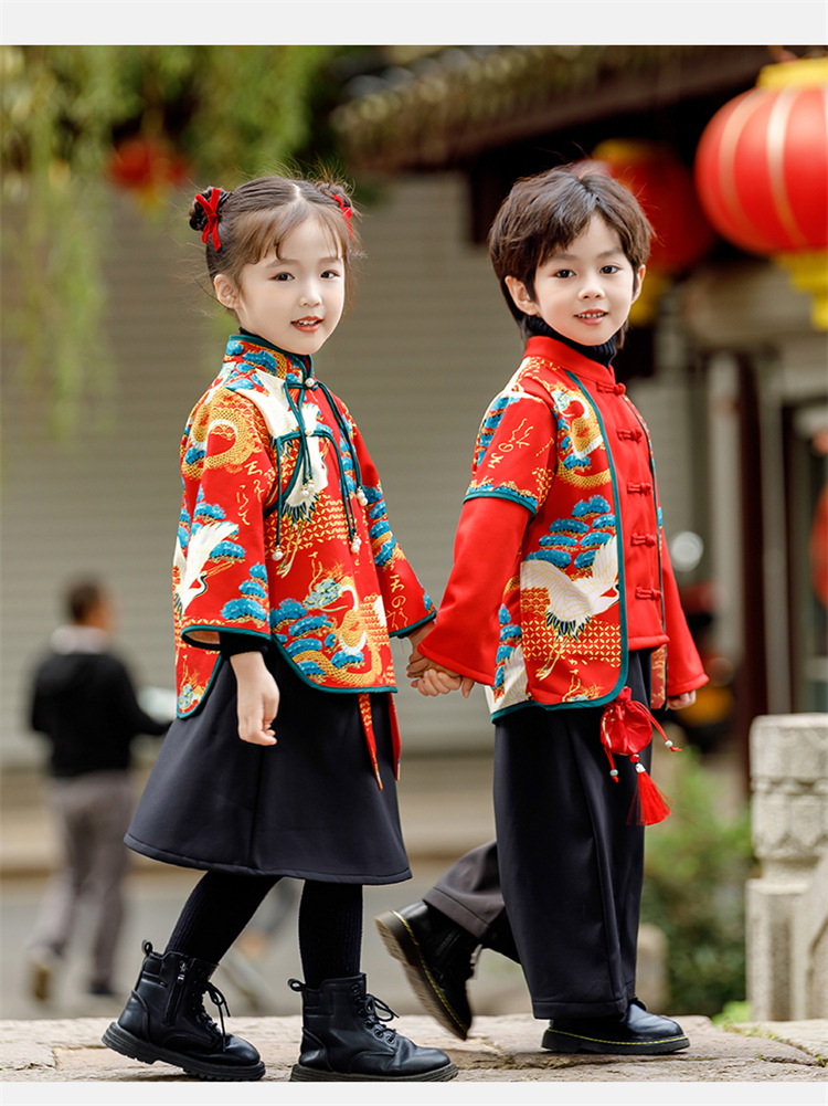 소년 소녀 가을과 겨울 당나라 세트 2023 새해 옷 기모 두꺼운 어린이 중국 스타일 축제 새 옷스토어 가기