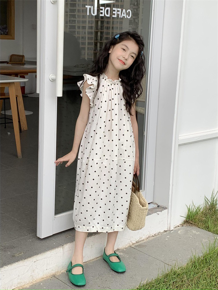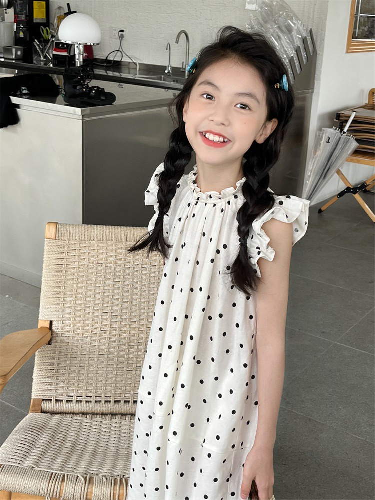 여자 원피스 여름 새로운 한국 스타일 웨이브 조끼 원피스 공주 원피스 어린이 머리카락의 세대