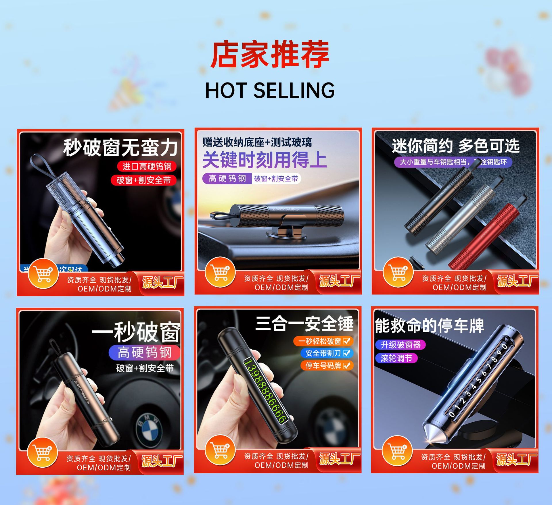 공장 도매 2 대 1 차 비상 공구 작은 안전 커터 미니 탈출 창 차단기 안전 망치스토어 가기
