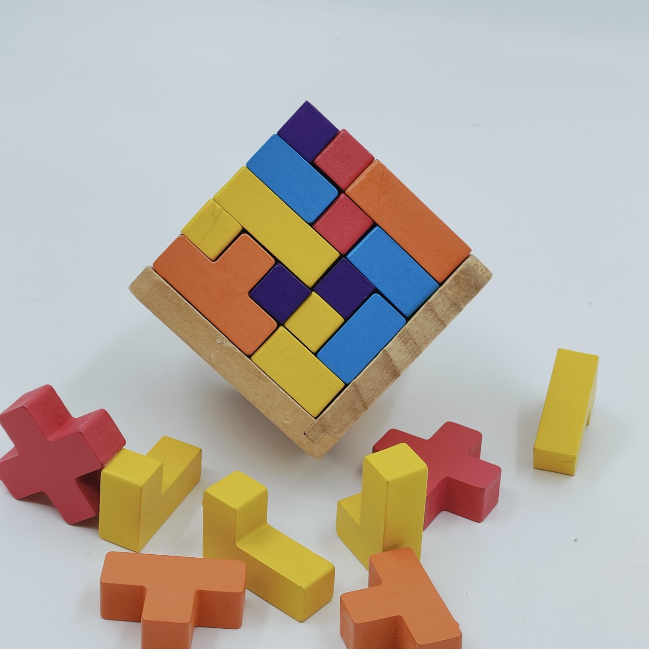 소년 장난감 입체 기하학 창의력 워크숍 어린이 조립 블록 루반 자물쇠 나무 창의력 조립 블록