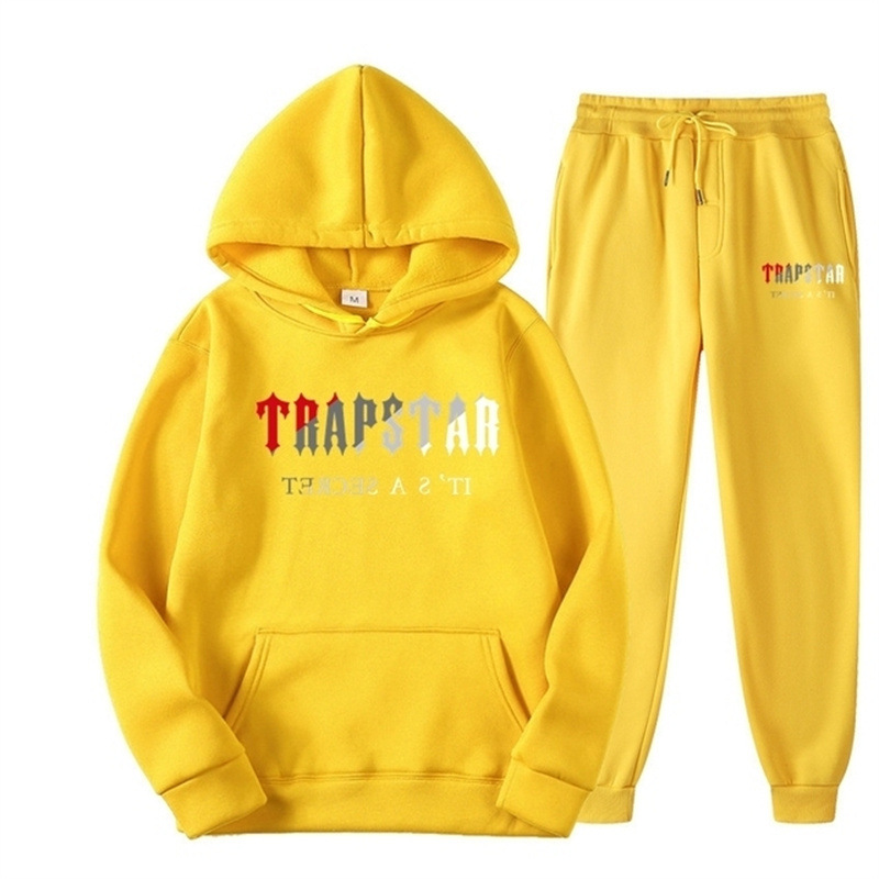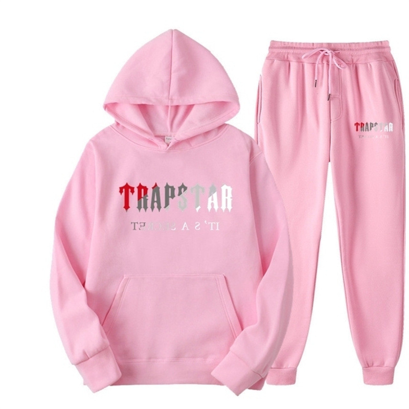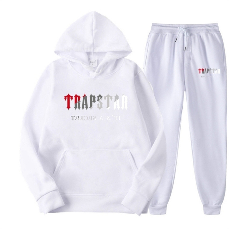트랩스타 스포츠웨어 브랜드 프린트 남성 스포츠 15 웜 컬러 투피스 루즈한 후드 + 팬츠
