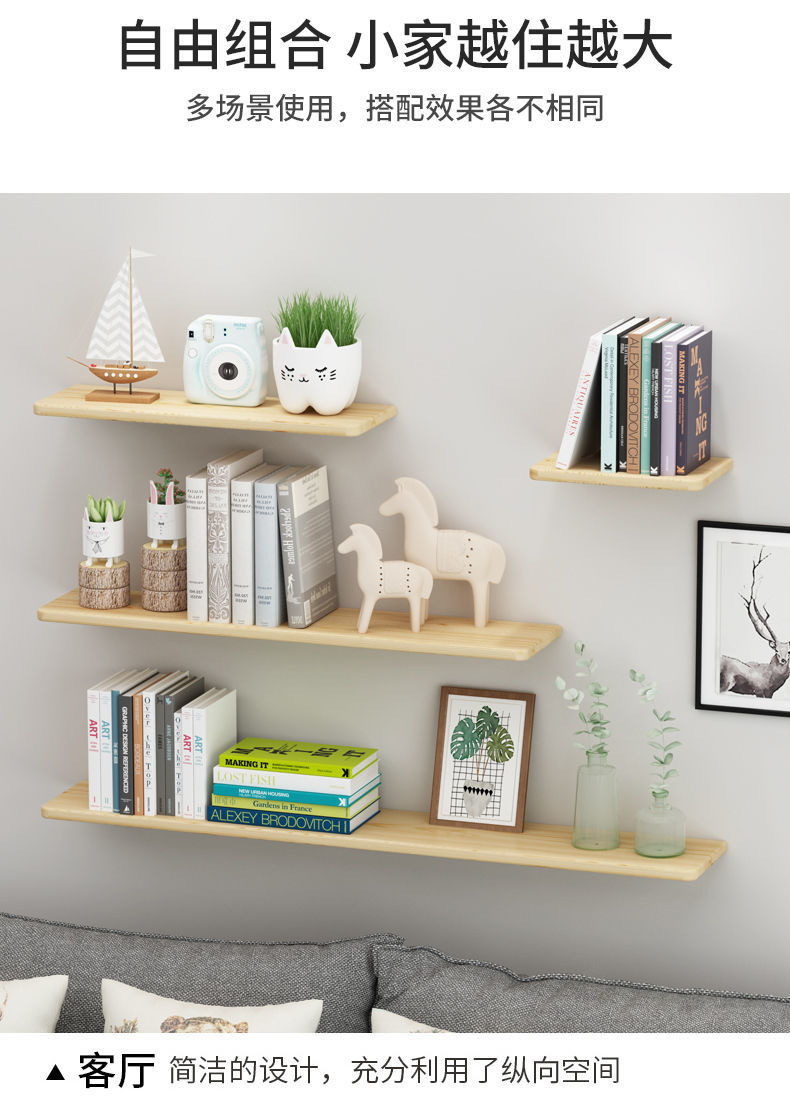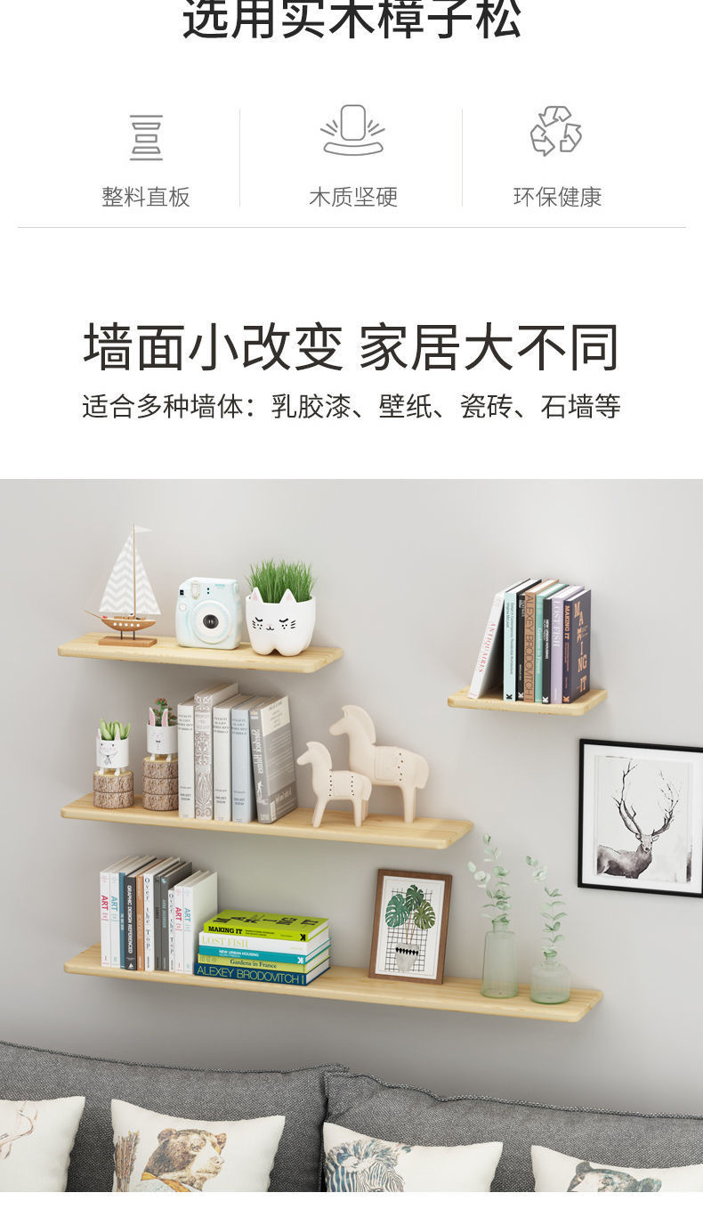 북유럽 단단한 나무 슬라이드 보드 벽걸이 벽 선반 보관 랙 소나무 보드 장식 벽걸이 패널 TV 배경스토어 가기