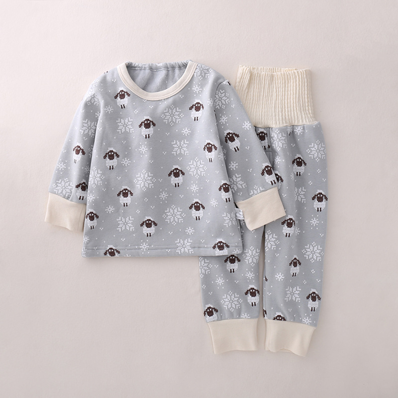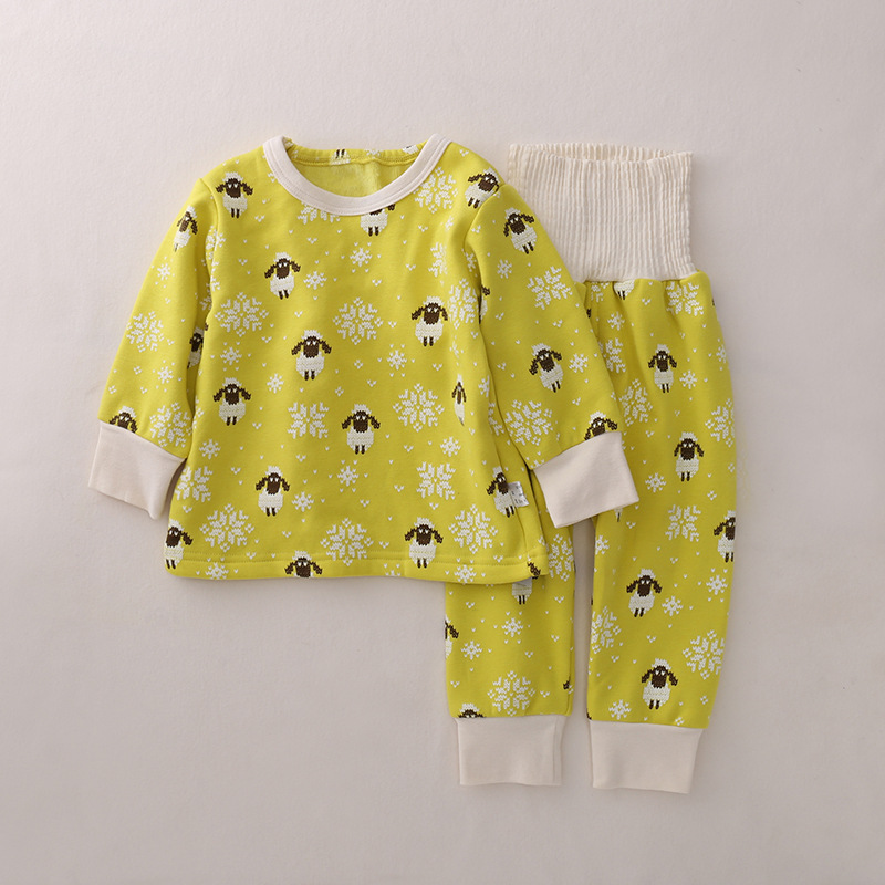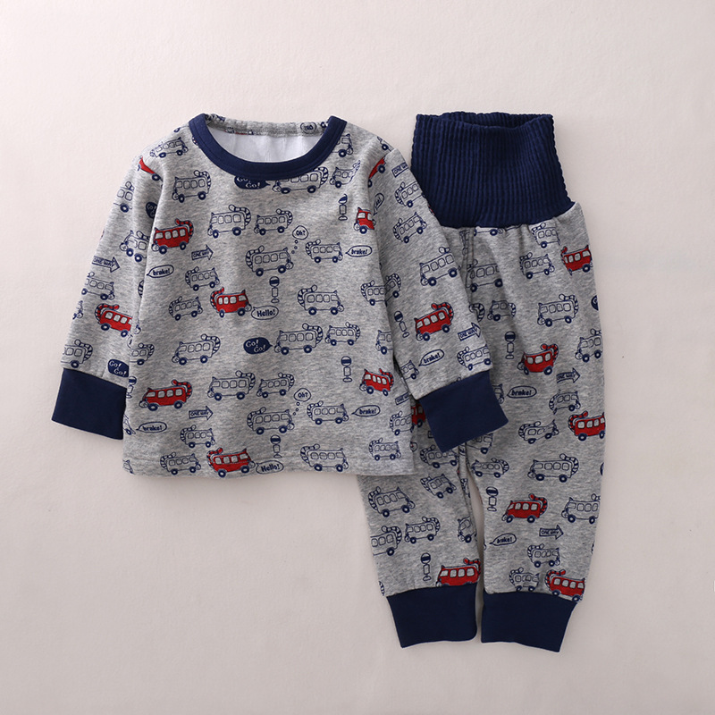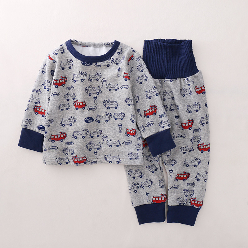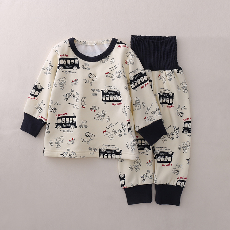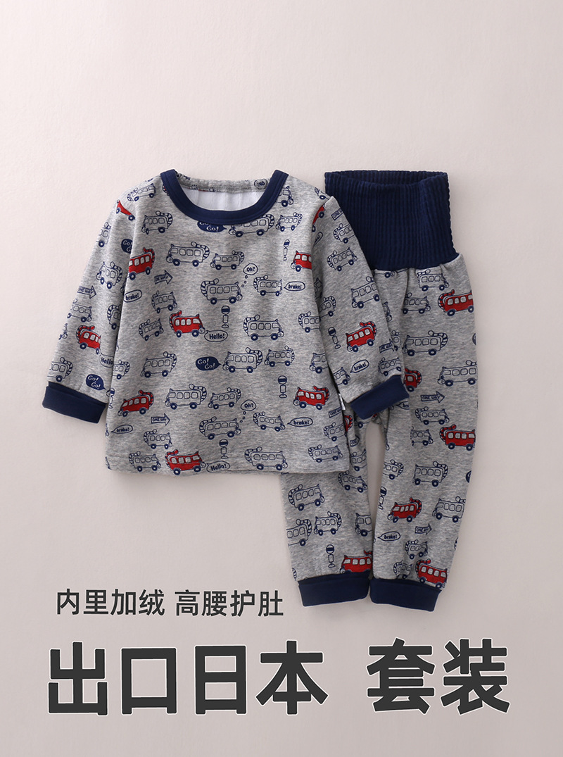 일본의 가을과 겨울 기모 아이들의 가정 옷 세트 소년 아기 열 속옷 하이 웨이스트 배꼽 만화 잠옷