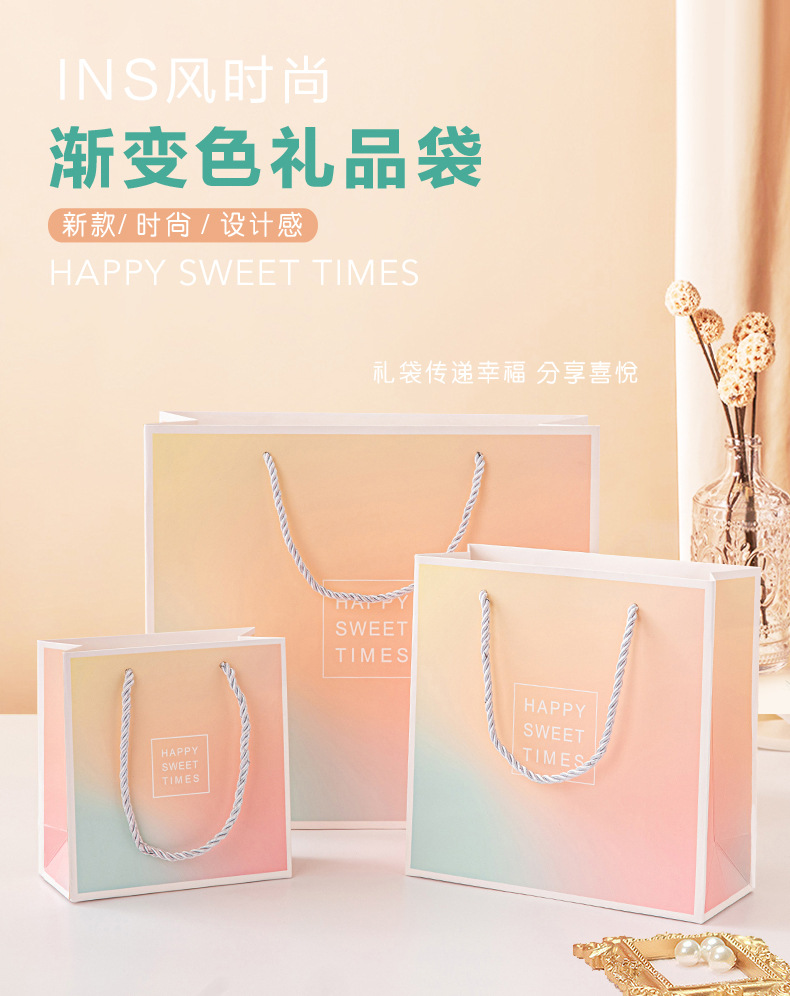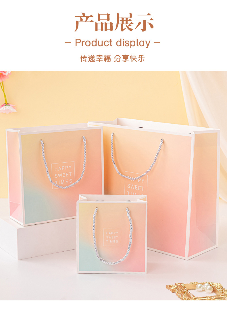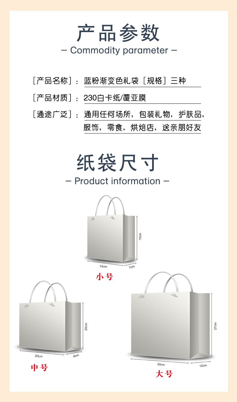 • 블루 핑크 그라디언트 선물 가방; 흰색 판지; 스몰 사이즈 14*7*15CM