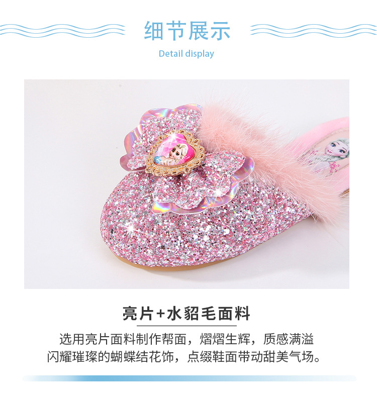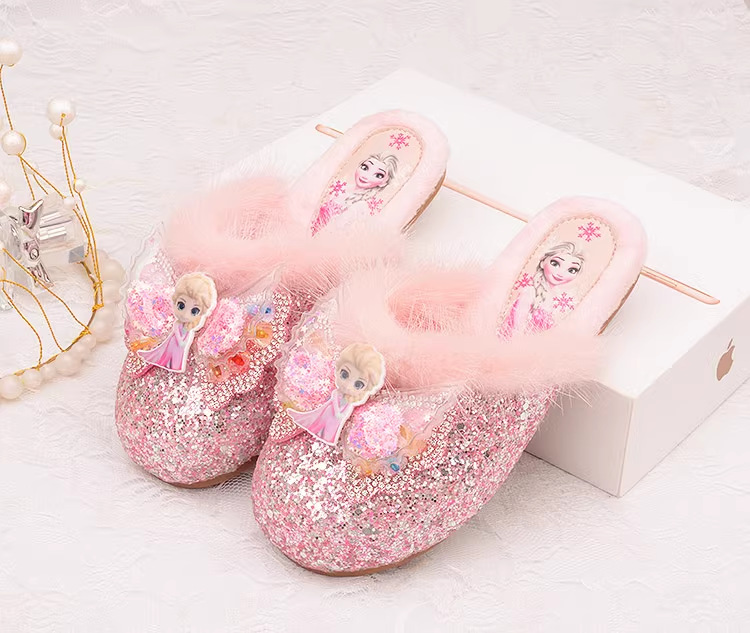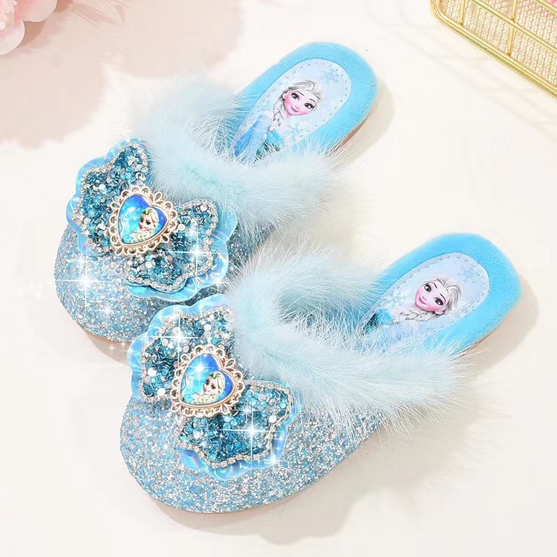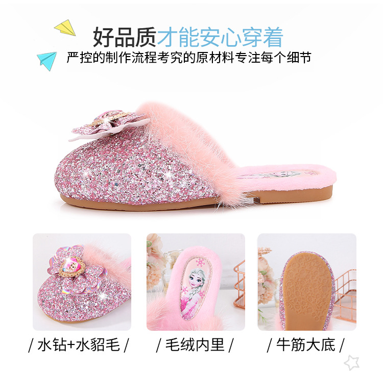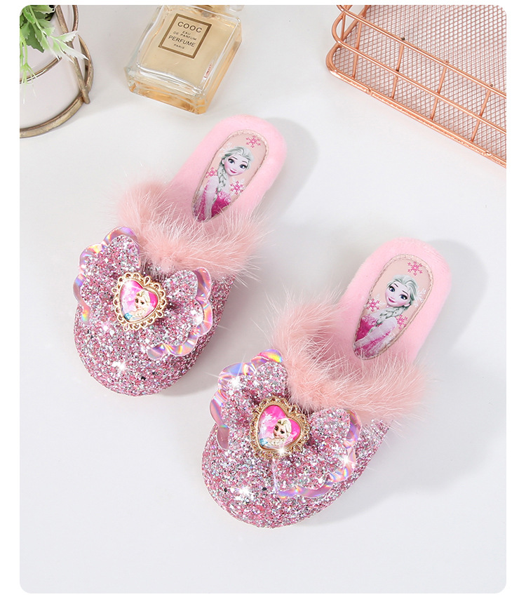 여아 플러시 슬리퍼 2024 새로운 패션 겨울 따뜻한 어린이 엘사 공주 홈 플랫 바닥 코튼 슬리퍼