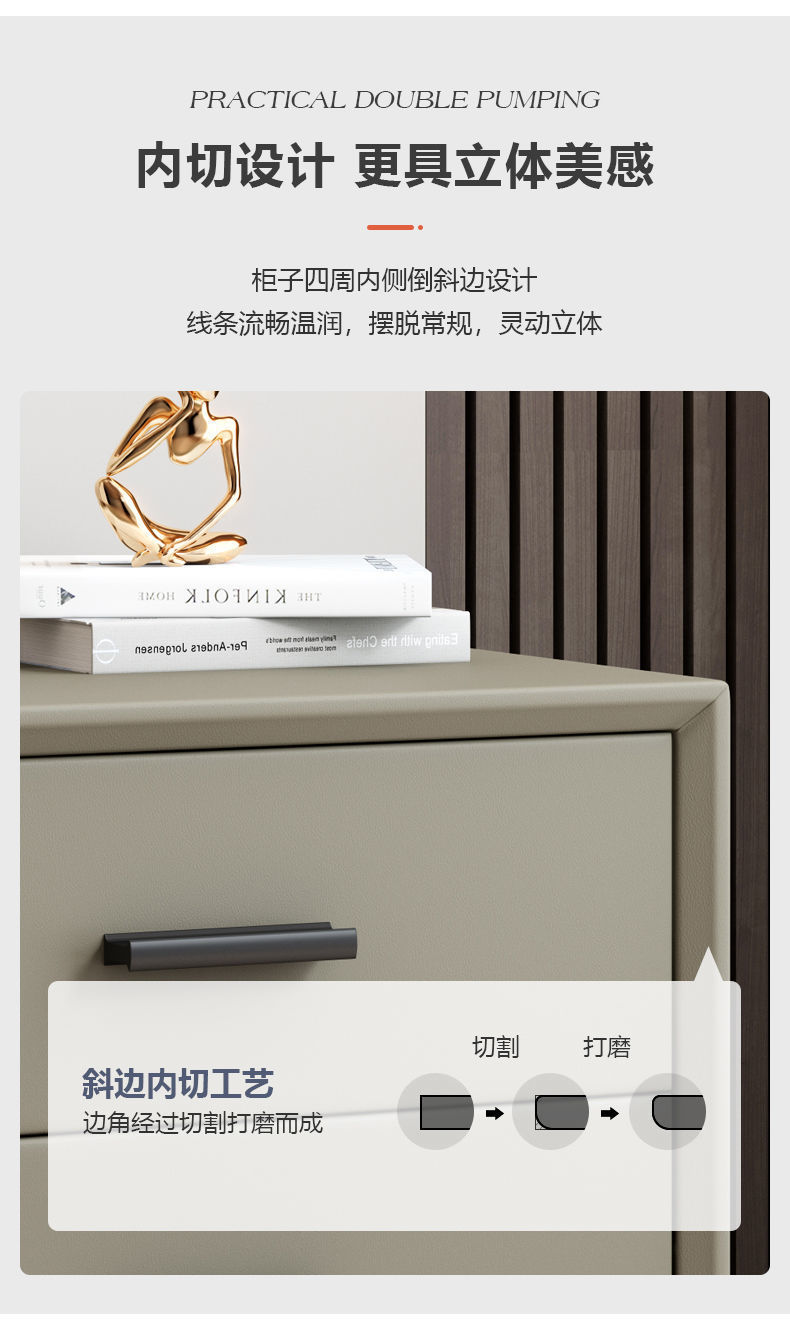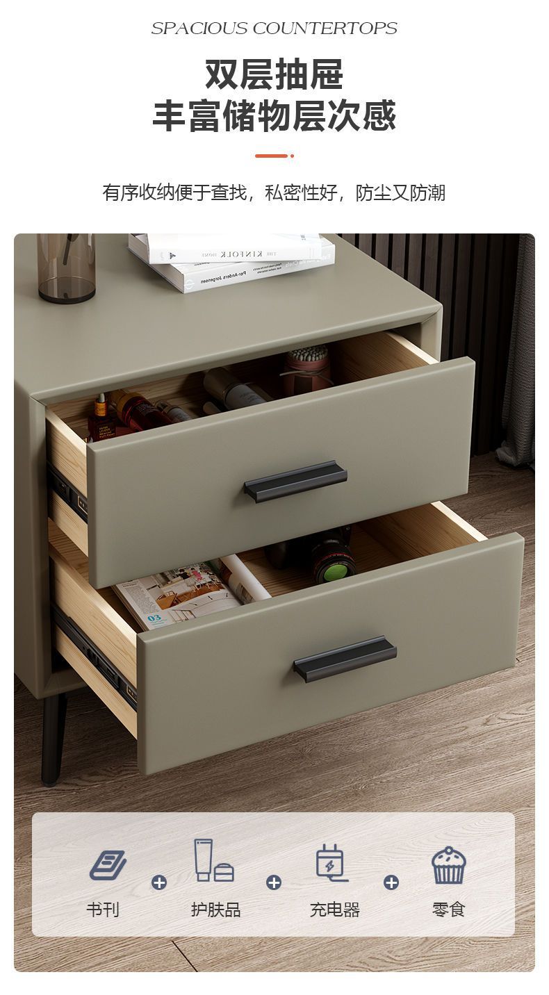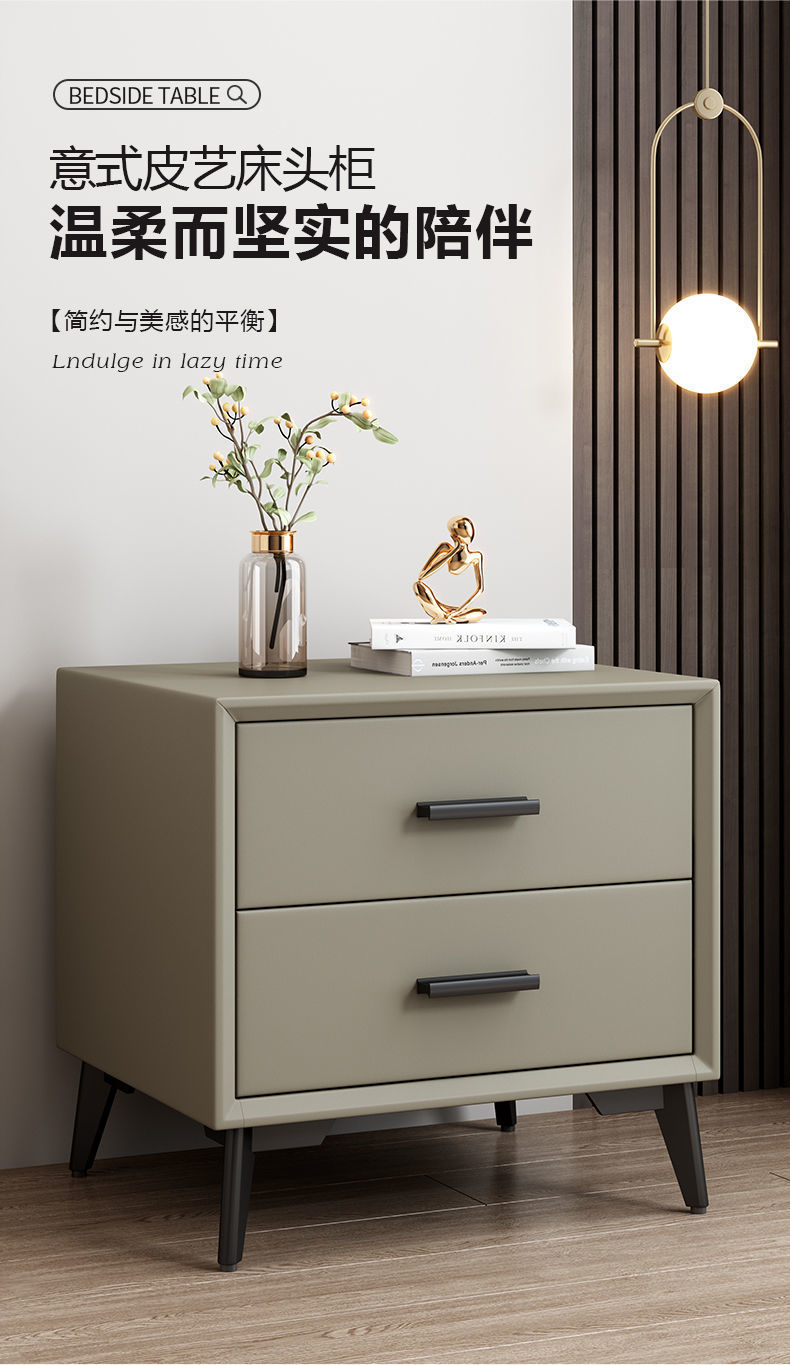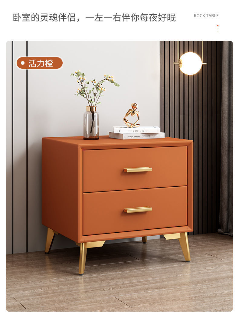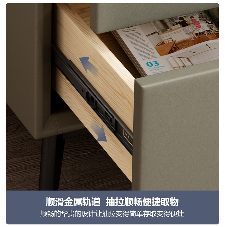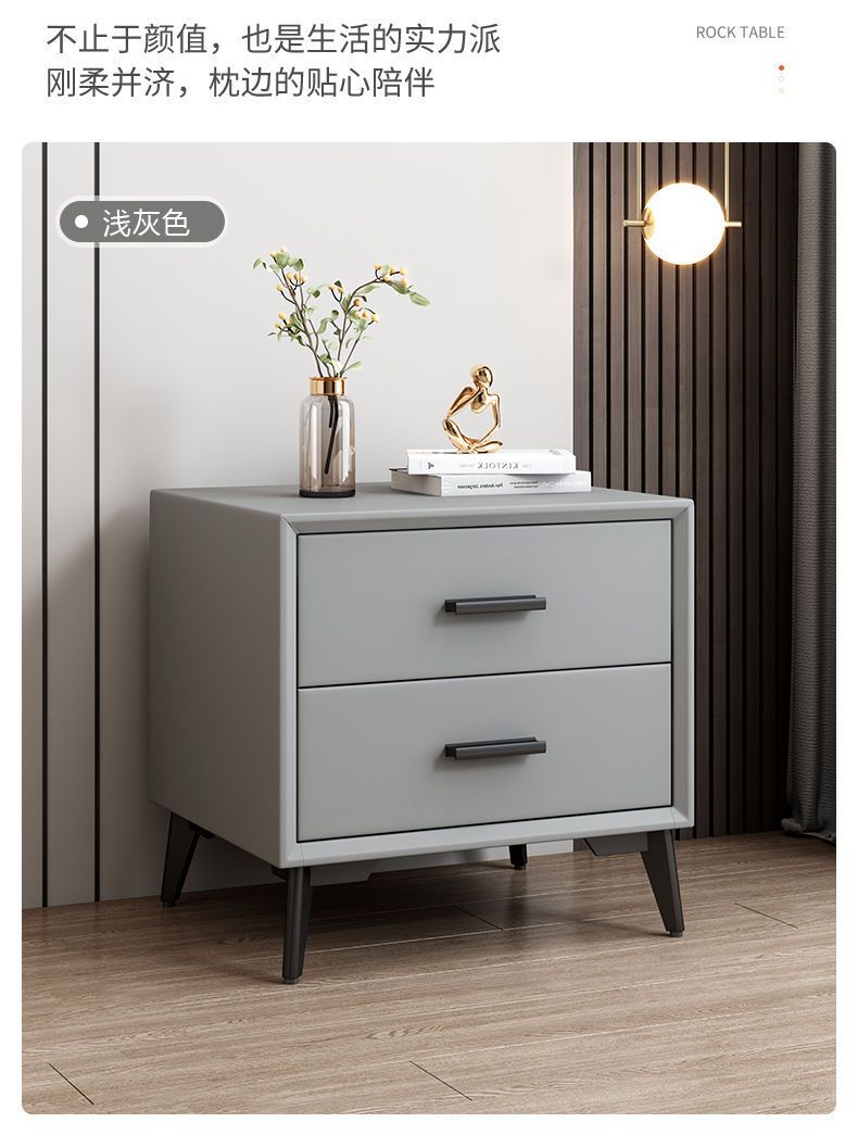 단단한 나무 빛 럭셔리 침대 옆 북유럽 간단한 현대 가죽 예술 보관 침대 옆 캐비닛 가정용 작은 아파트 침실 확대