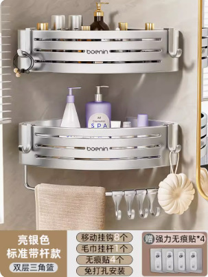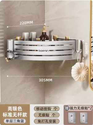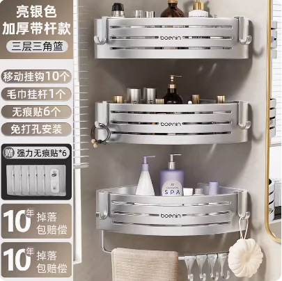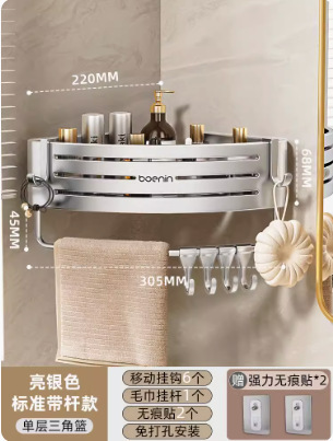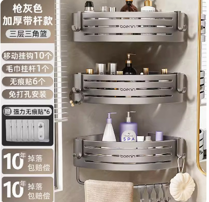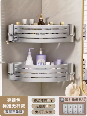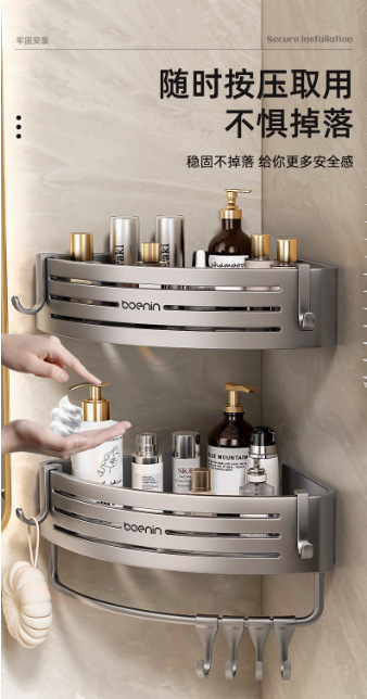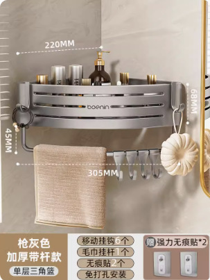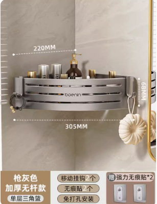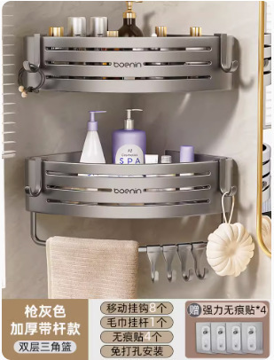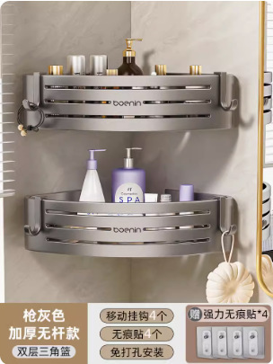 건 그레이 욕실 수납 랙 욕실 삼각형 선반 펀치 프리 벽걸이 화장실 화장실 세면대 보관 랙스토어 가기