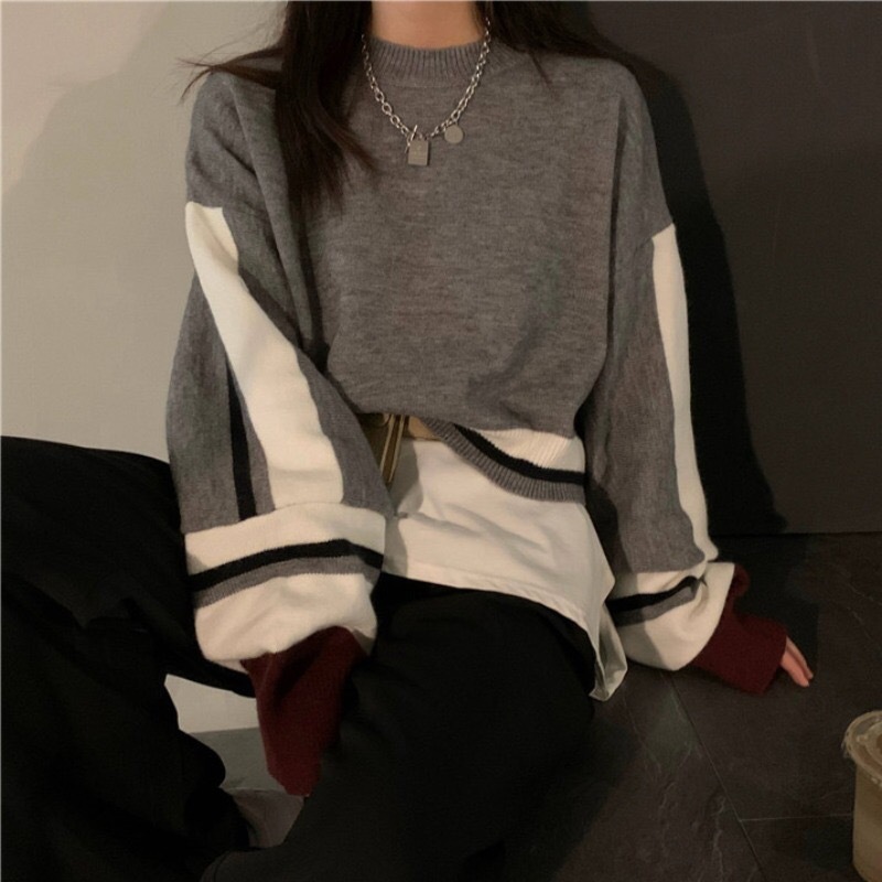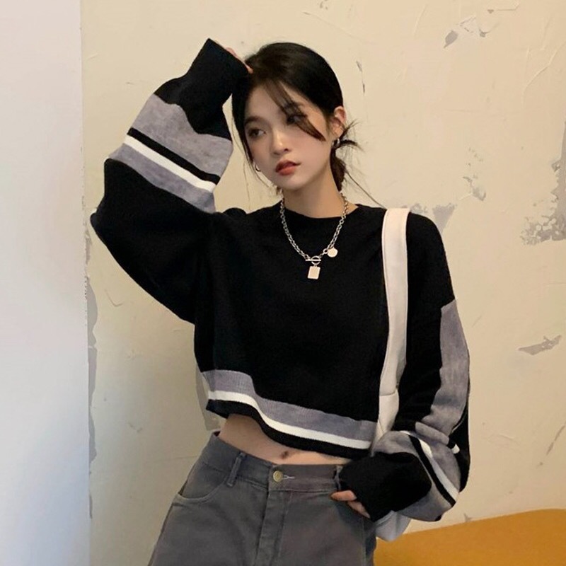 크로스 보더 짧은 스웨터 여성의 가을과 겨울 새로운 일본 디자인 감각 틈새 랜턴 슬리브 하이 웨이스트 라운드 넥 스웨터 탑