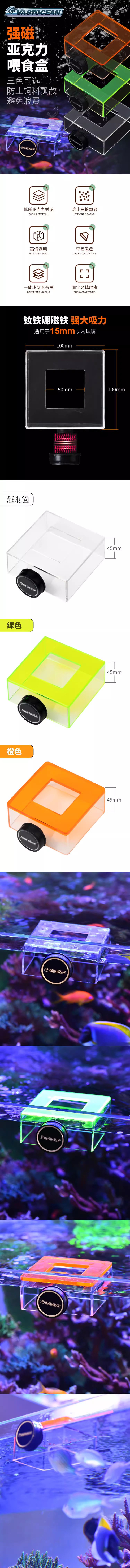 • 颜色分类: Vastocean 强磁亚克力喂食盒(透明色) Vastocean 强磁亚克力喂食盒(绿色) Vastocean 强磁亚克力喂食盒(橙色)