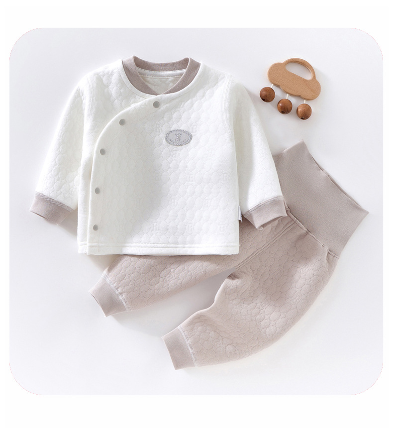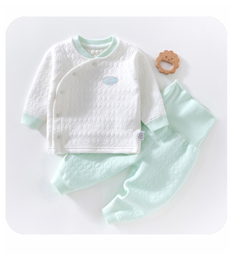아기 따뜻한 세트 봄과 가을 긴 소매 높은 허리 배 보호 가을 옷 긴 존스 신생아 아기 어린이 기본 면 세트