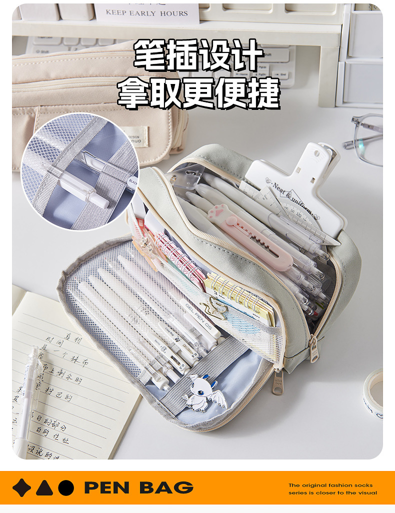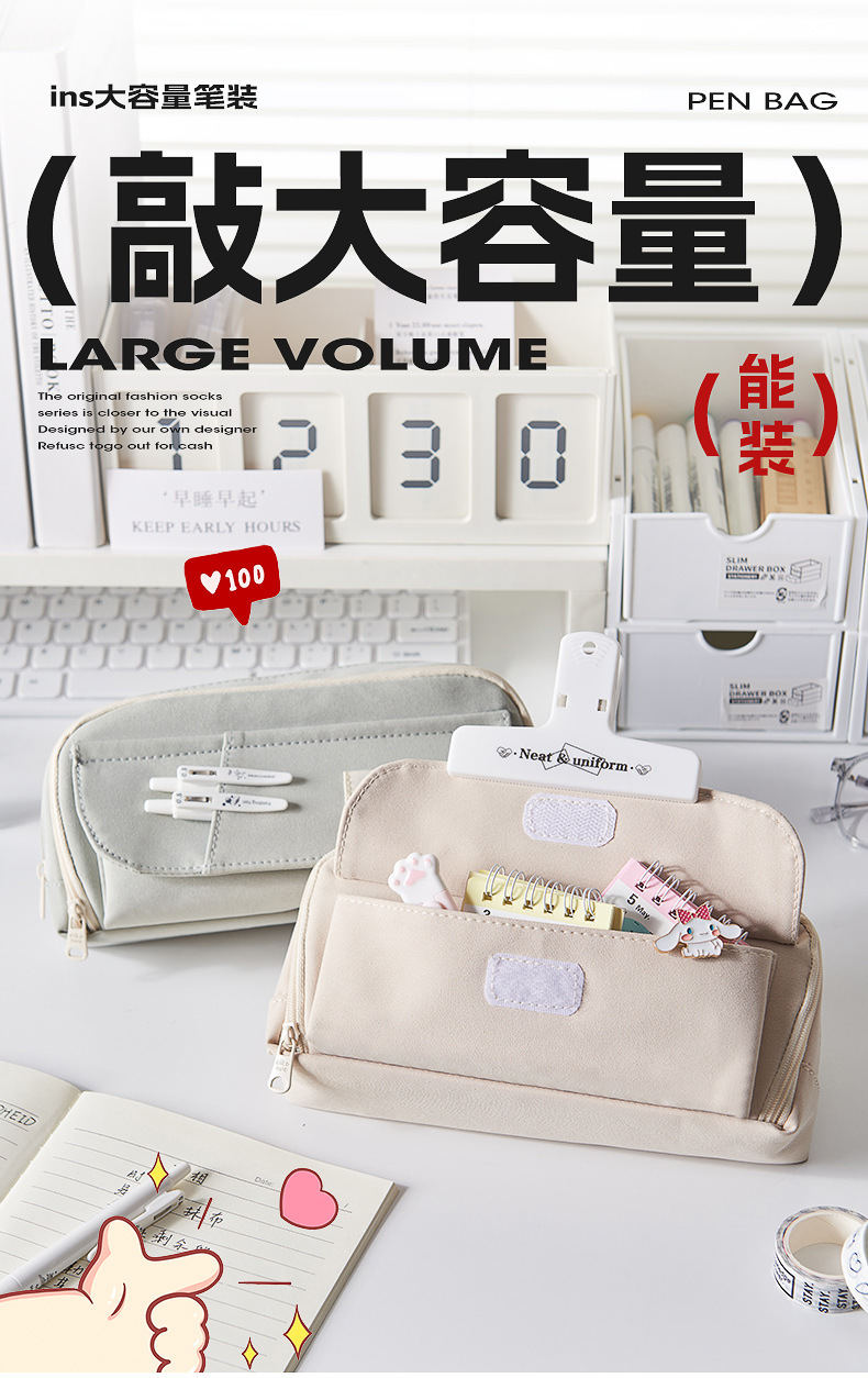 2024 인터넷 연예인 새로운 간단한 in 바람 펜 면 천 한국 먼지 방지 다층 학생 문구 케이스 중학교 학생 필통스토어 가기