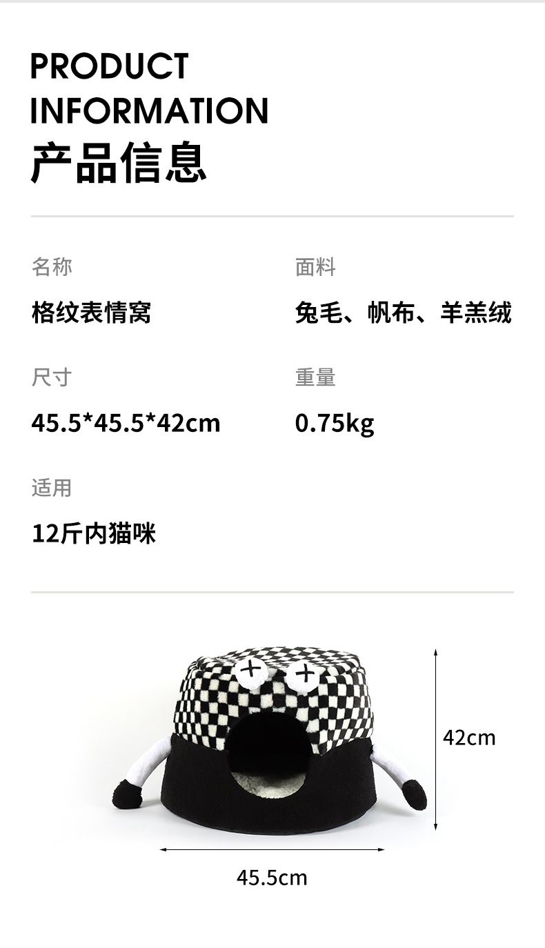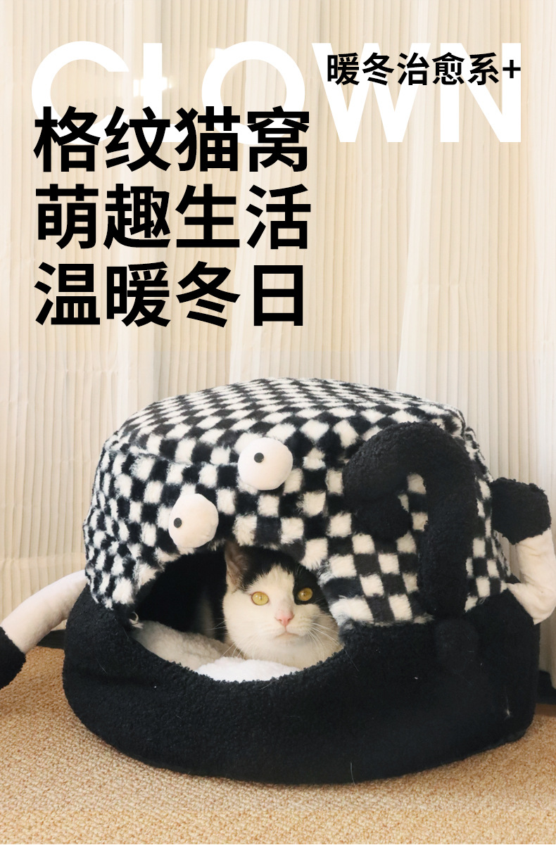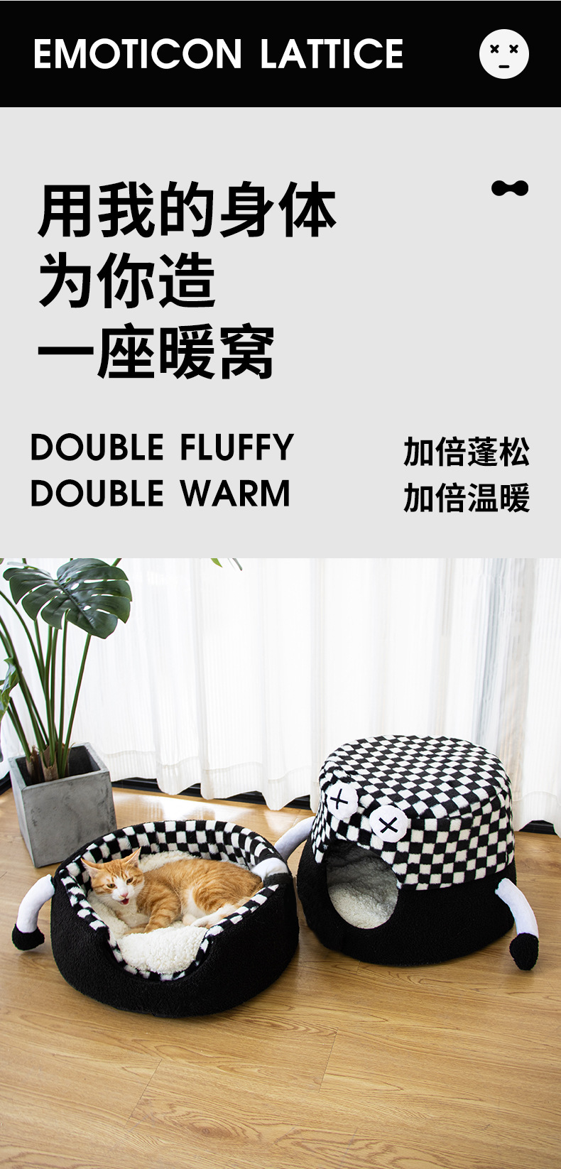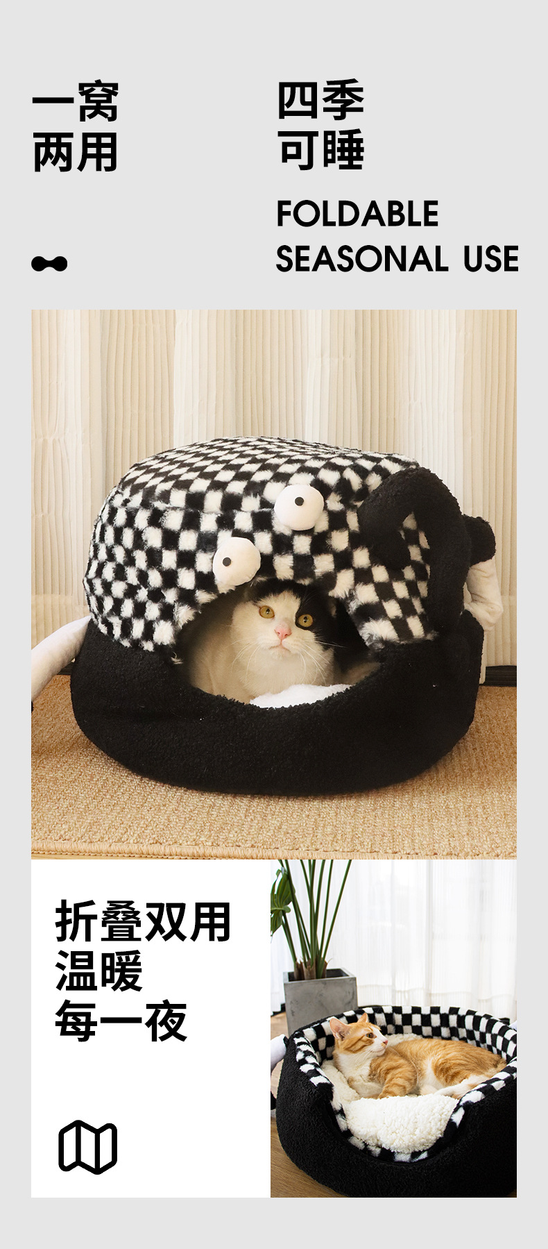 Leyoupai 대형 개방형 흑백 격자 무늬 표현 고양이 둥지, 폐쇄형 접이식 이중 용도 애완 동물 둥지, 모든 계절에 적합