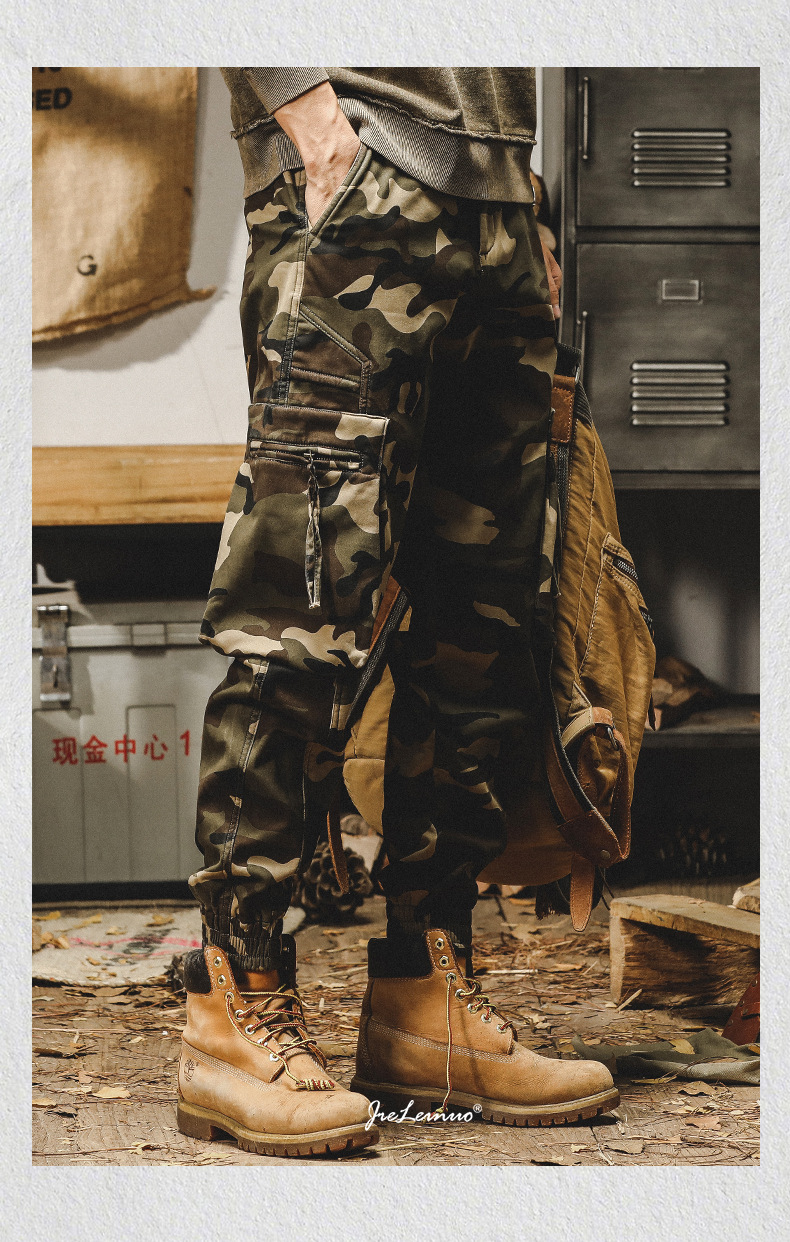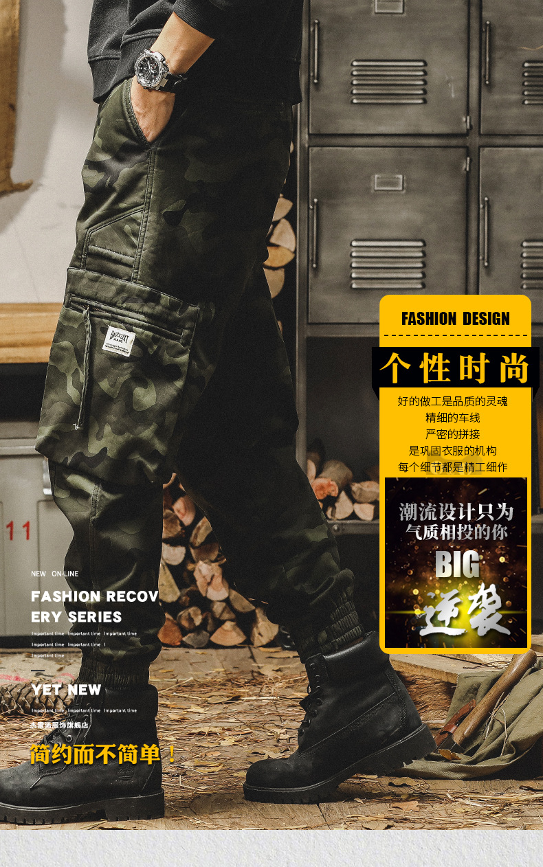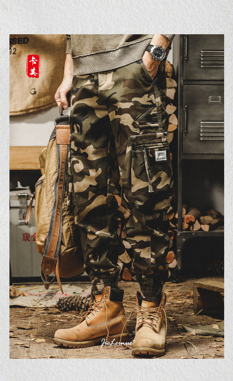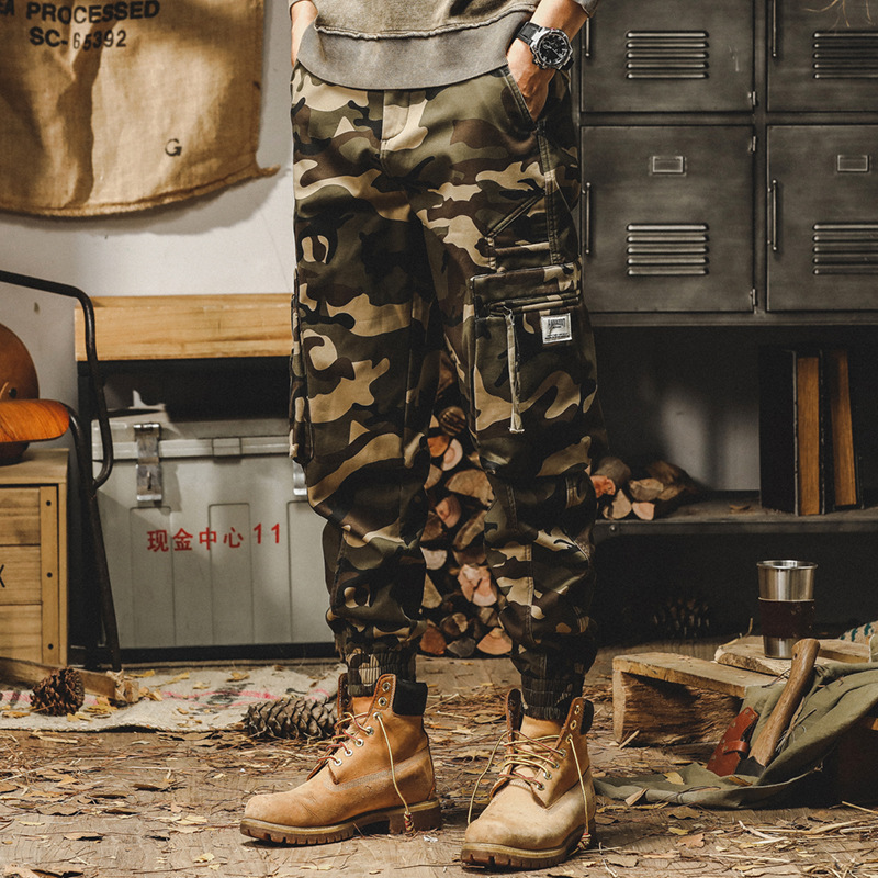 미국식 무거운 위장 캐주얼 바지 남자 봄과 가을 느슨한 스트레이트 대형 포켓 유행 빈티지 낙하산 귀여운 바지 남자스토어 가기