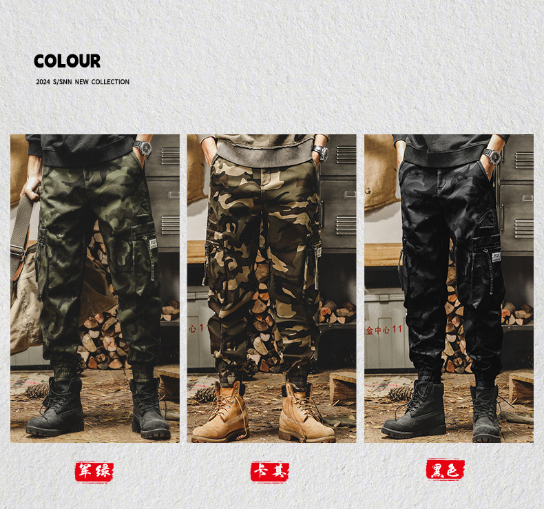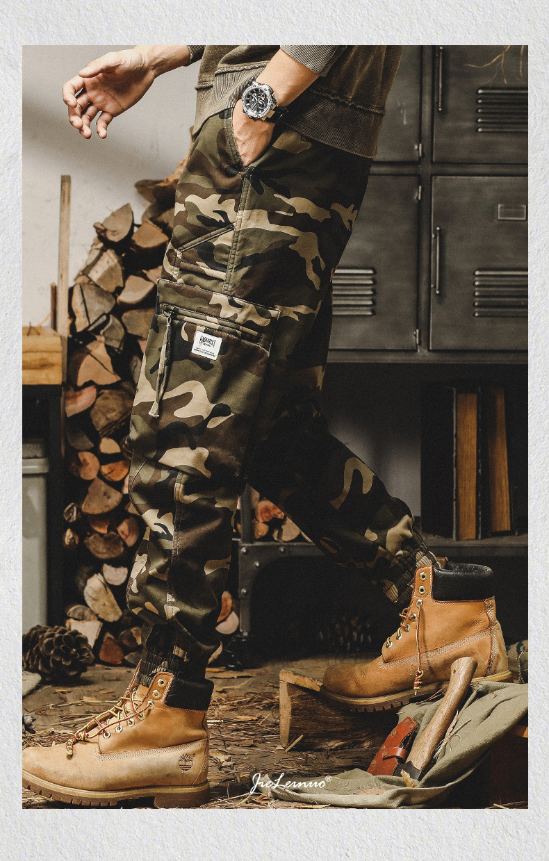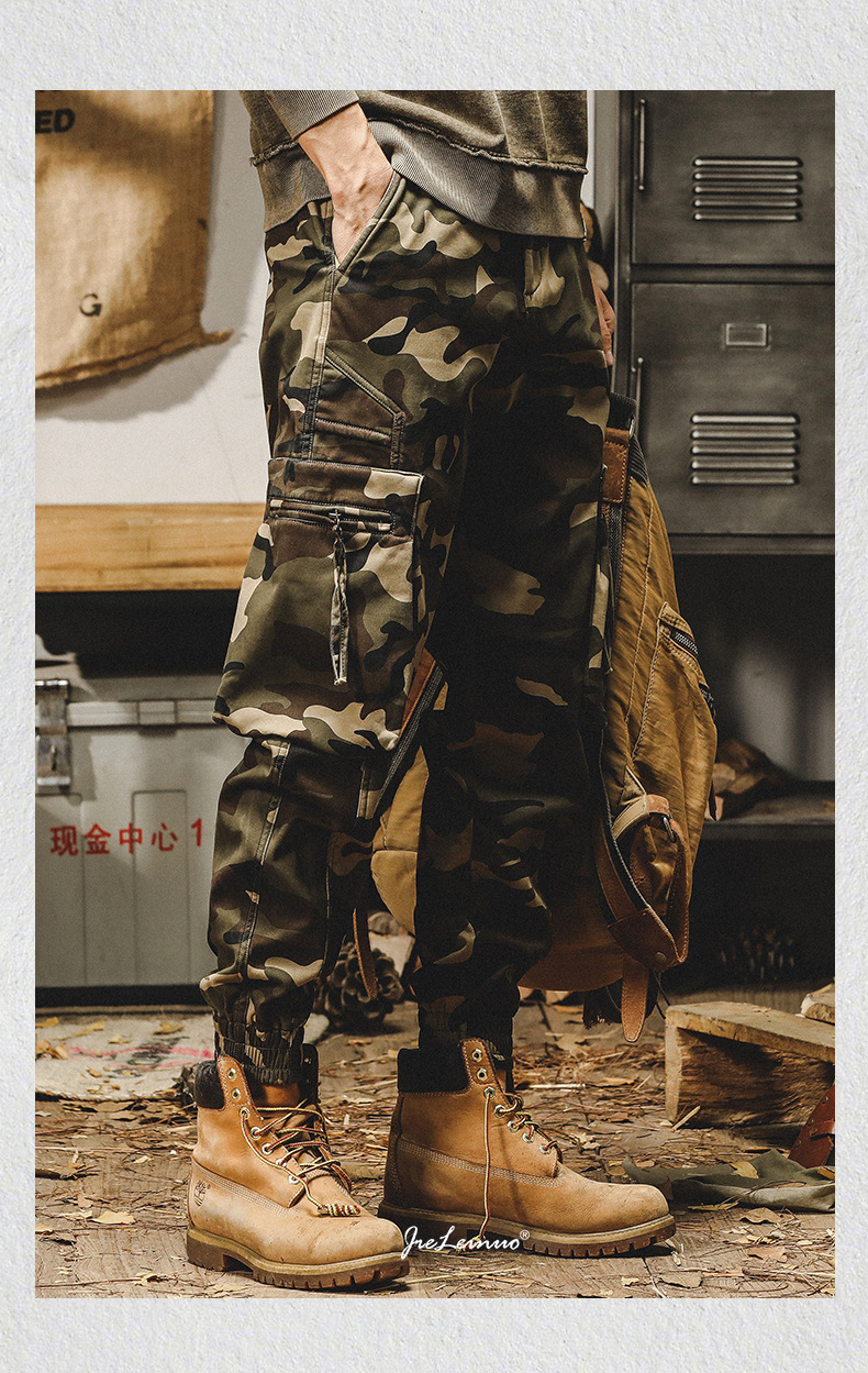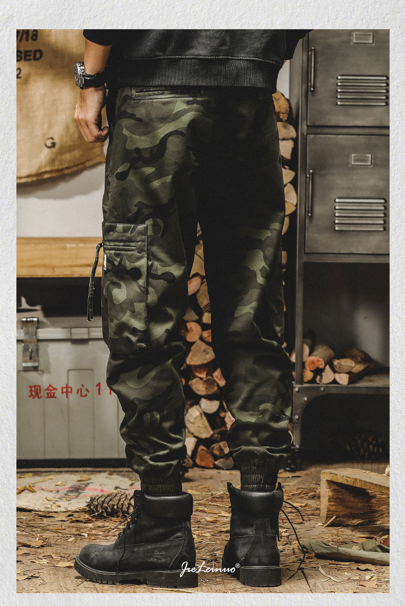 미국식 무거운 위장 캐주얼 바지 남자 봄과 가을 느슨한 스트레이트 대형 포켓 유행 빈티지 낙하산 귀여운 바지 남자스토어 가기
