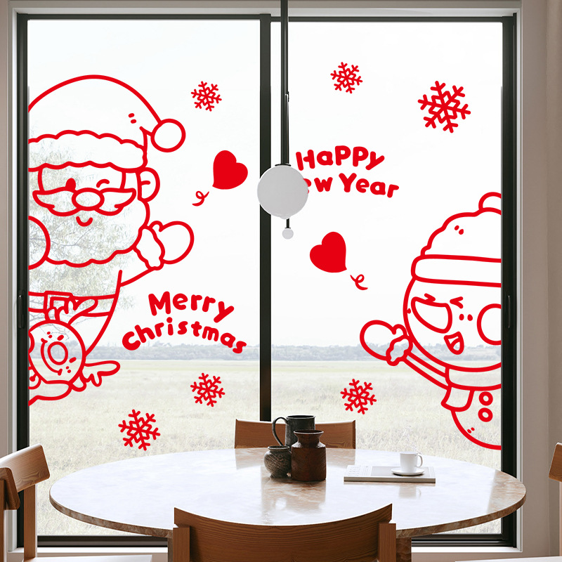 크리스마스 장식 2024 크리스마스 창 유리 문 원활한 정적 스티커 산타 클로스 눈송이 만화 스티커스토어 가기
