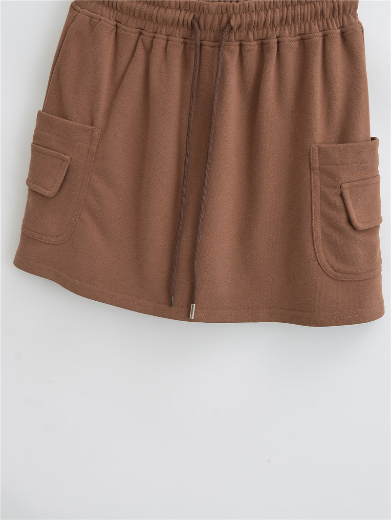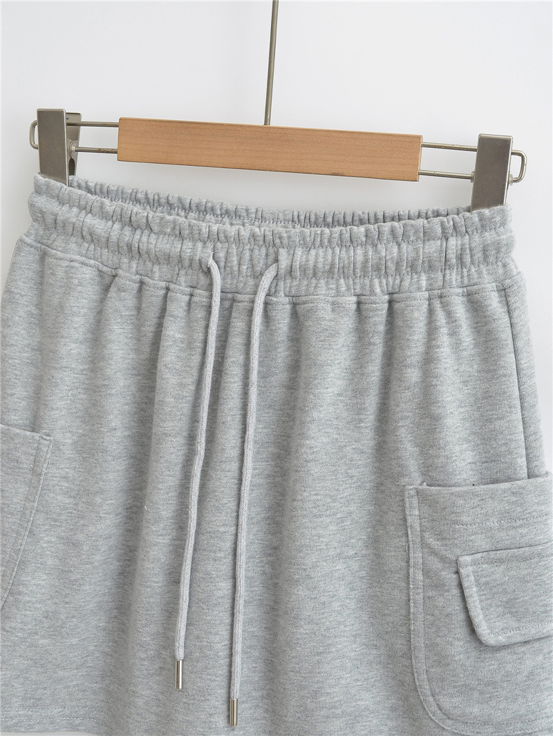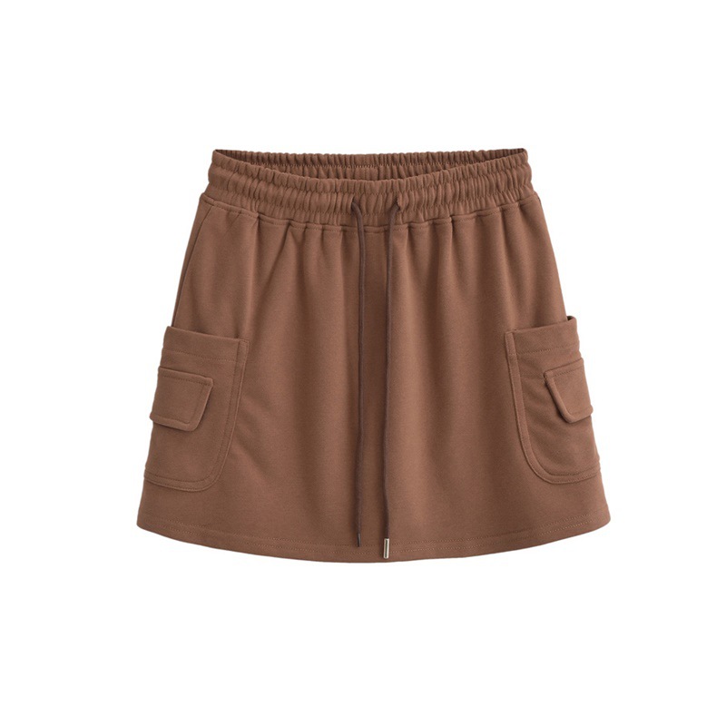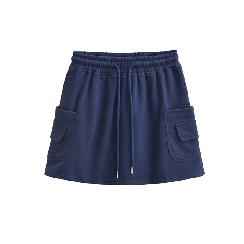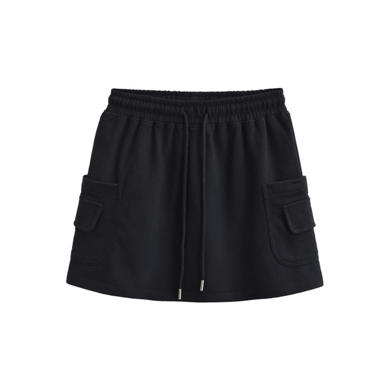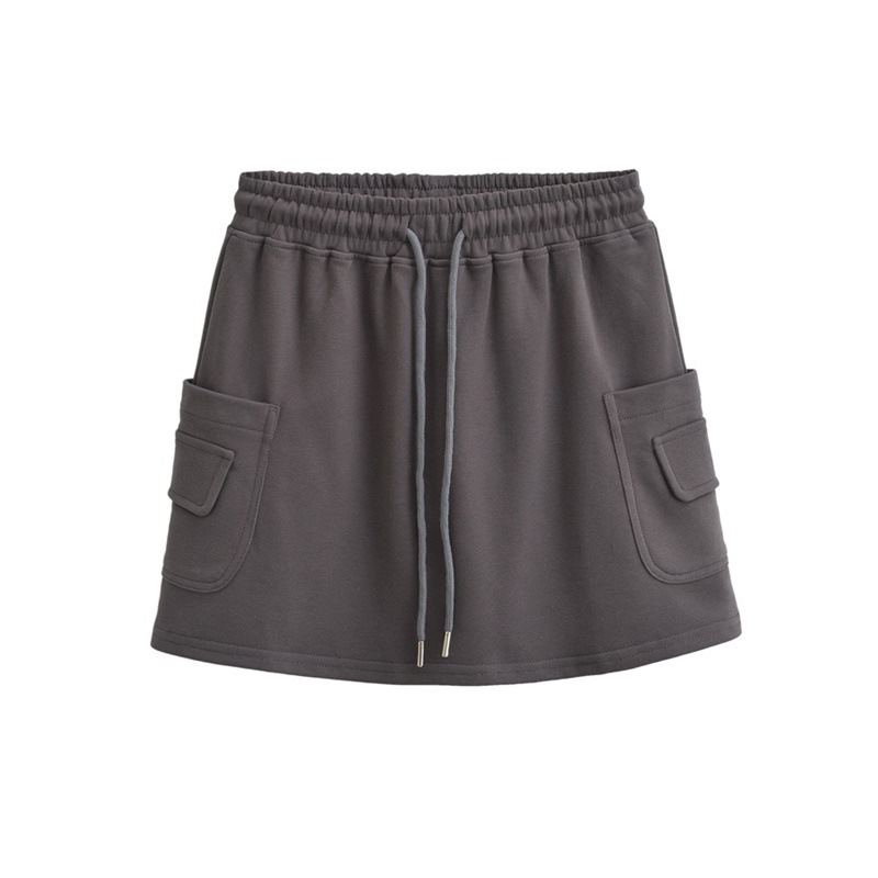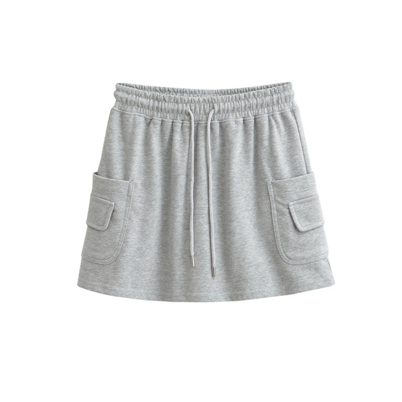 미국 복고풍 회색 탄성 허리 멀티 포켓 작업복 스커트 여자의 가을 2023 하이 웨이스트 졸라매는 끈 힙 스커트