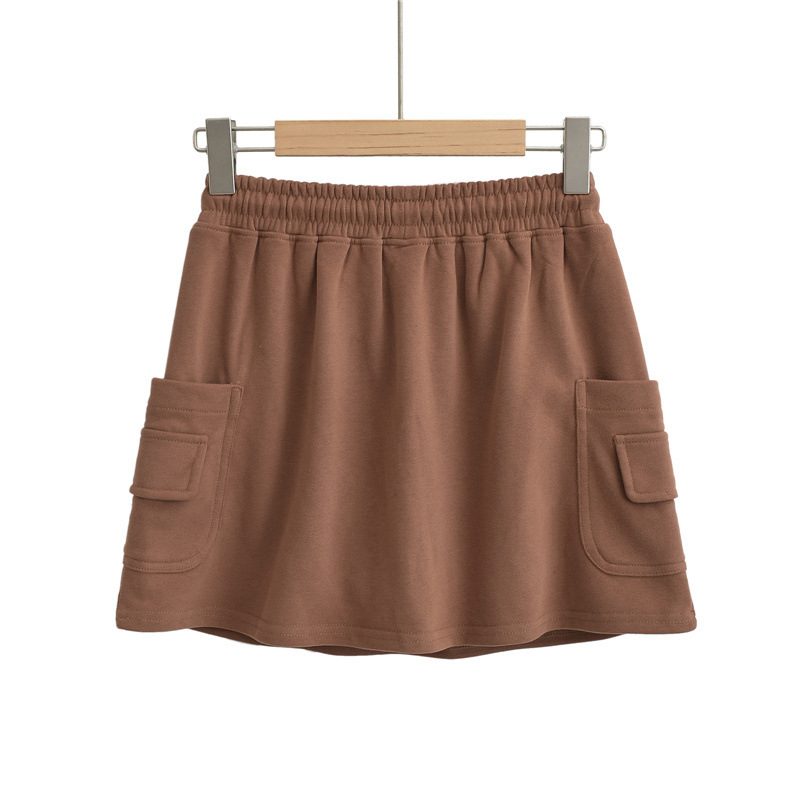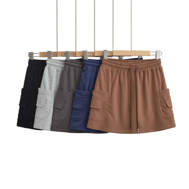 미국 복고풍 회색 탄성 허리 멀티 포켓 작업복 스커트 여자의 가을 2023 하이 웨이스트 졸라매는 끈 힙 스커트스토어 가기