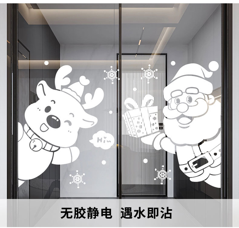 크리스마스 장식 가게 슬라이딩 도어 창 원활한 스티커 크리스마스 스티커 산타 클로스 엘크 만화 스티커