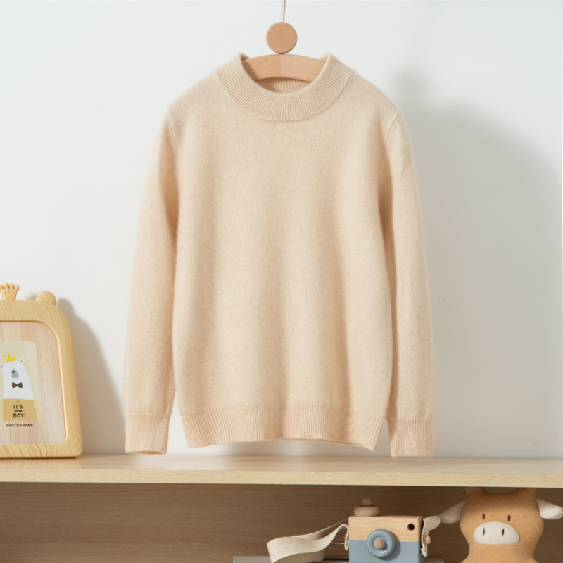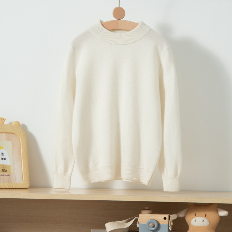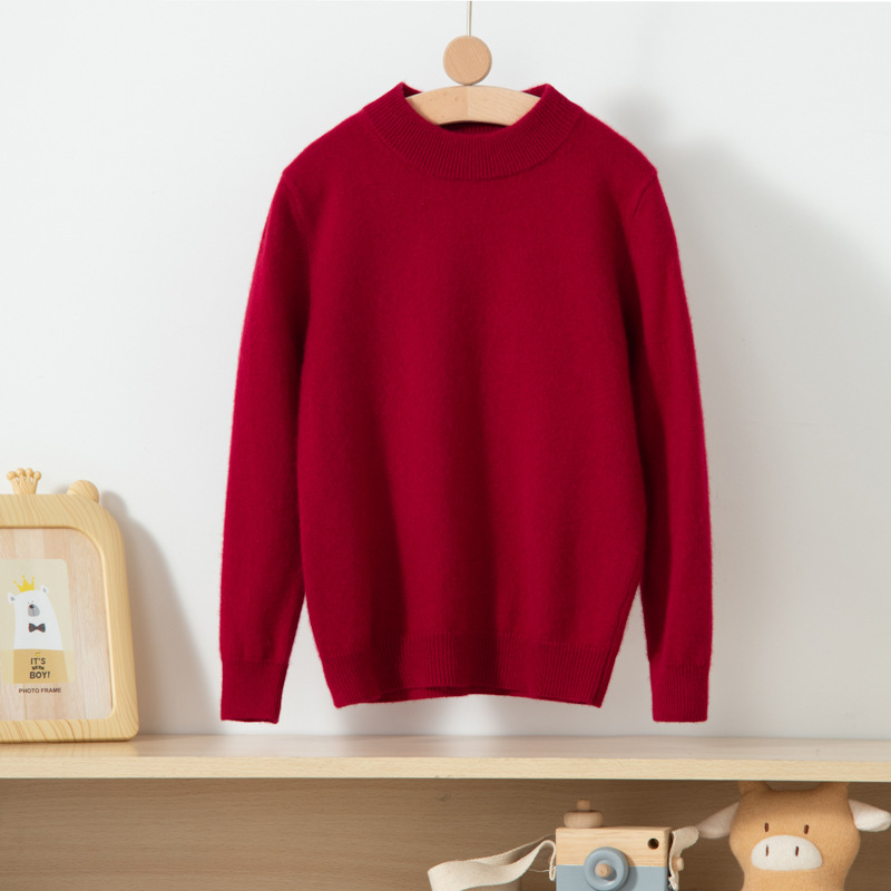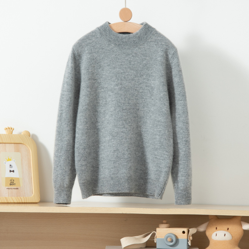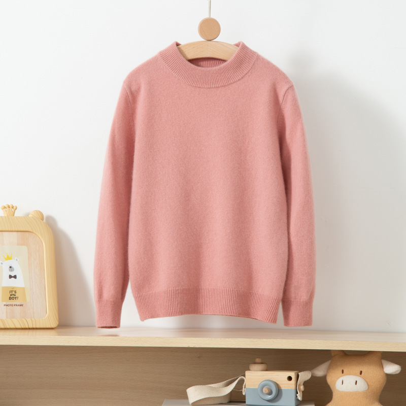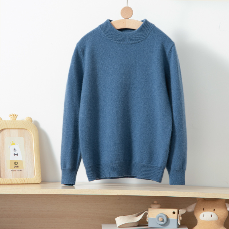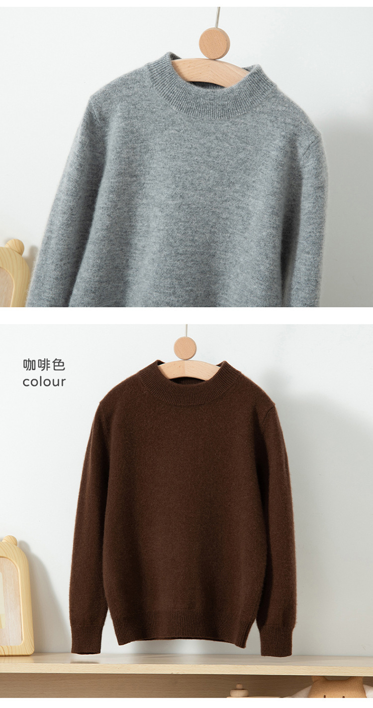어린이 캐시미어 스웨터 소년과 소녀를위한 세미 하이 크루넥 가을과 겨울 기본 심플 울베이스 스웨터 플러스 사이즈 아동복스토어 가기