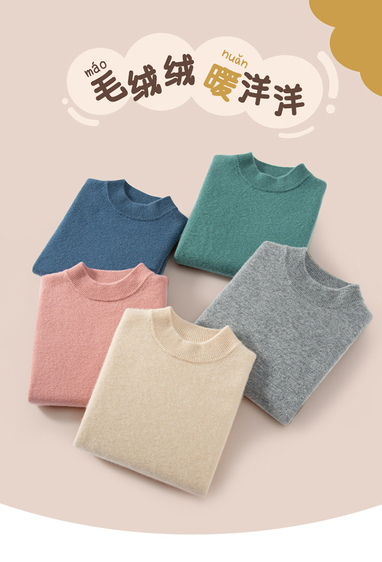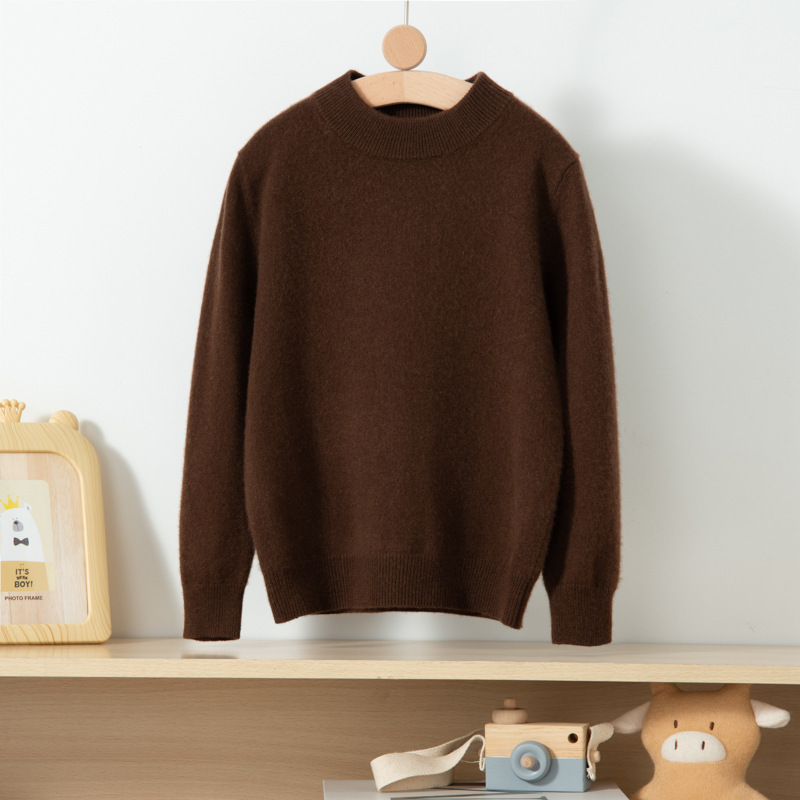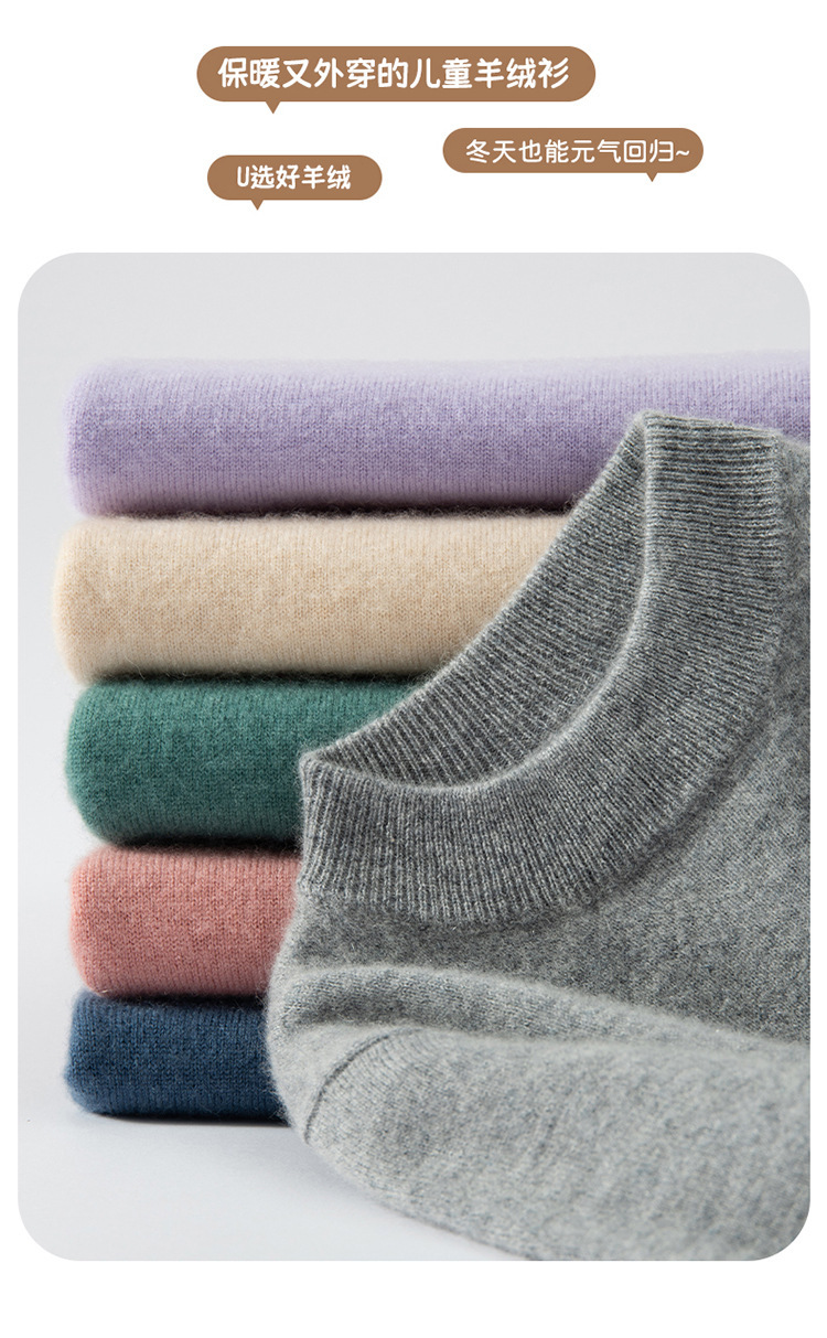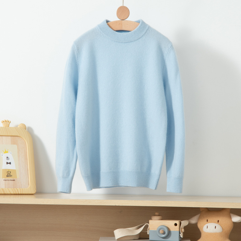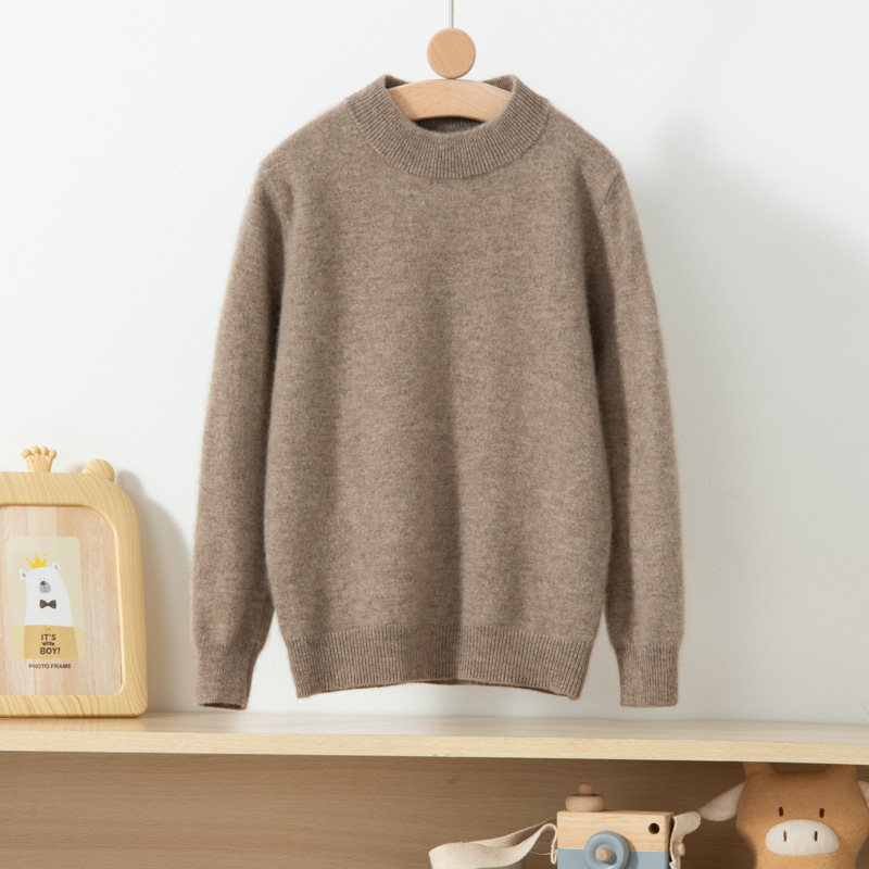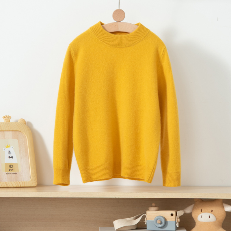 어린이 캐시미어 스웨터 소년과 소녀를위한 세미 하이 크루넥 가을과 겨울 기본 심플 울베이스 스웨터 플러스 사이즈 아동복스토어 가기