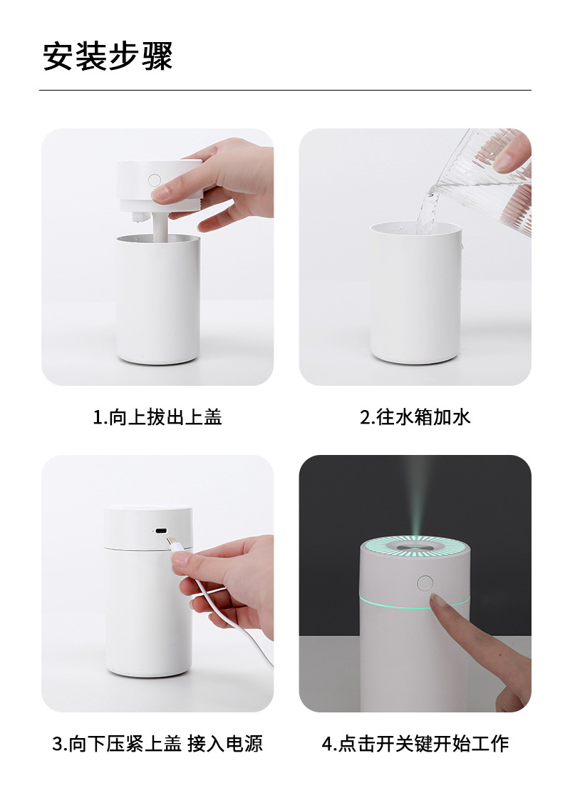 23 새로운 슬라이드 램프 가습기 USB 휴대용 가정용 자동차 320ml 안개 다채로운 분위기 램프 가습기스토어 가기
