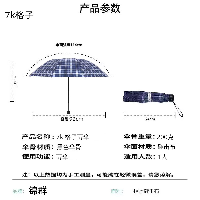 • 7 뼈 격자 수동 우산 [믹스 컬러]]