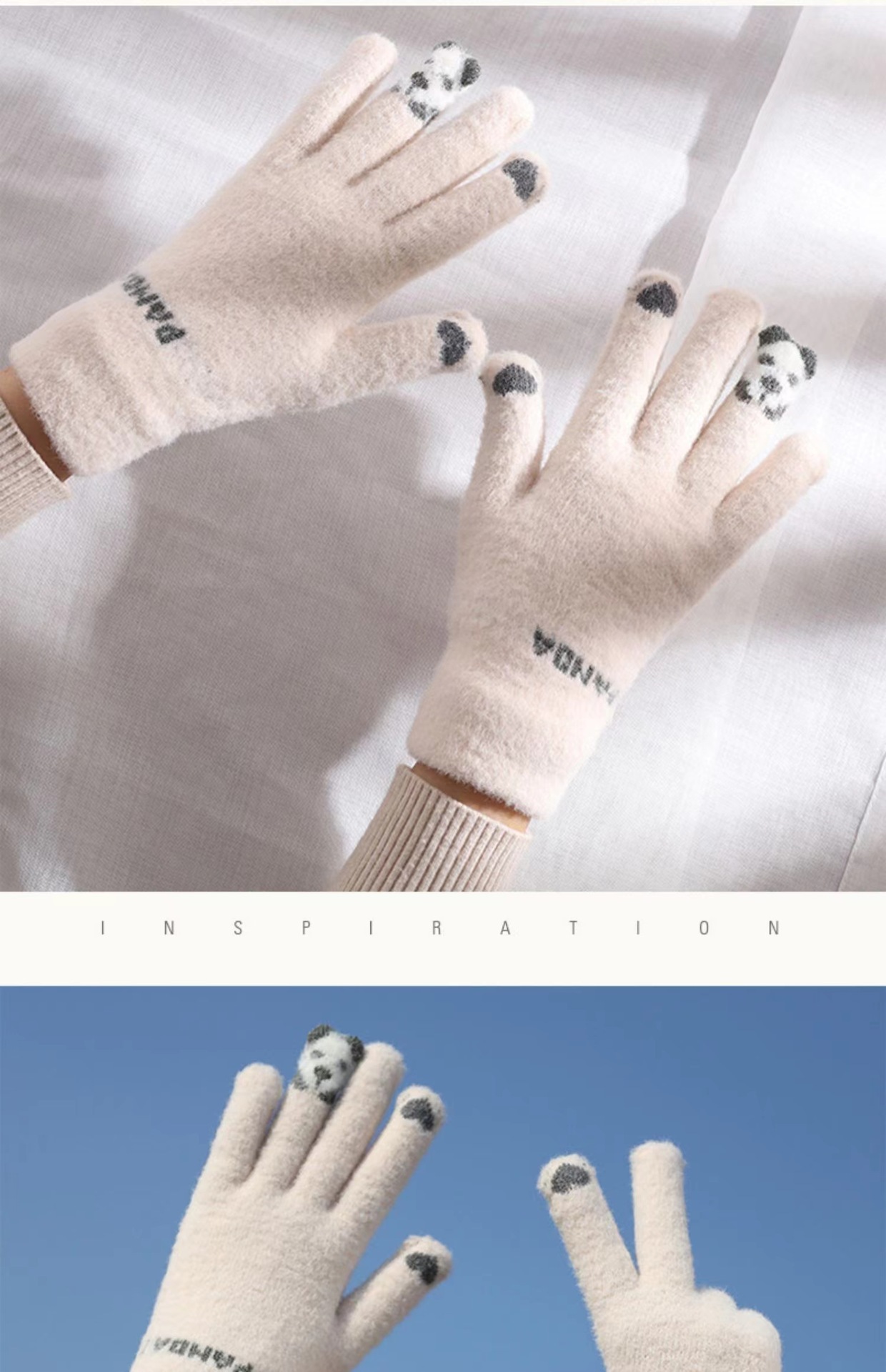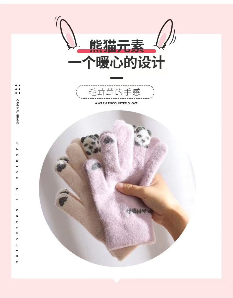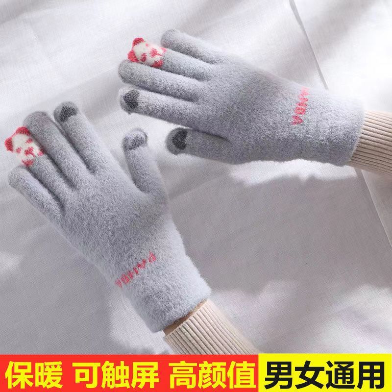 가을과 겨울 여성의 곰 손가락 장갑 한국식 다목적 니트 두꺼운 따뜻한 글쓰기 승마 터치 스크린 장갑
