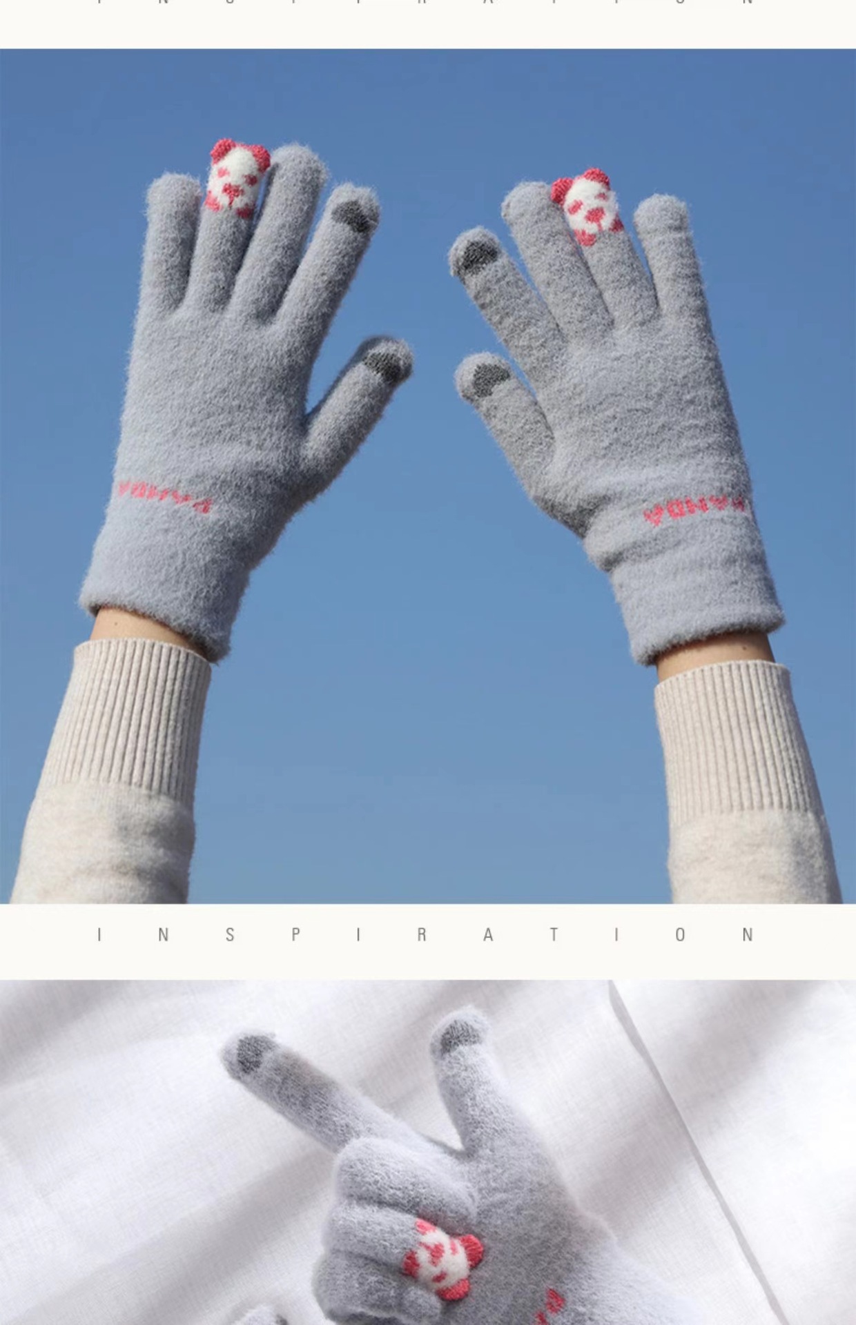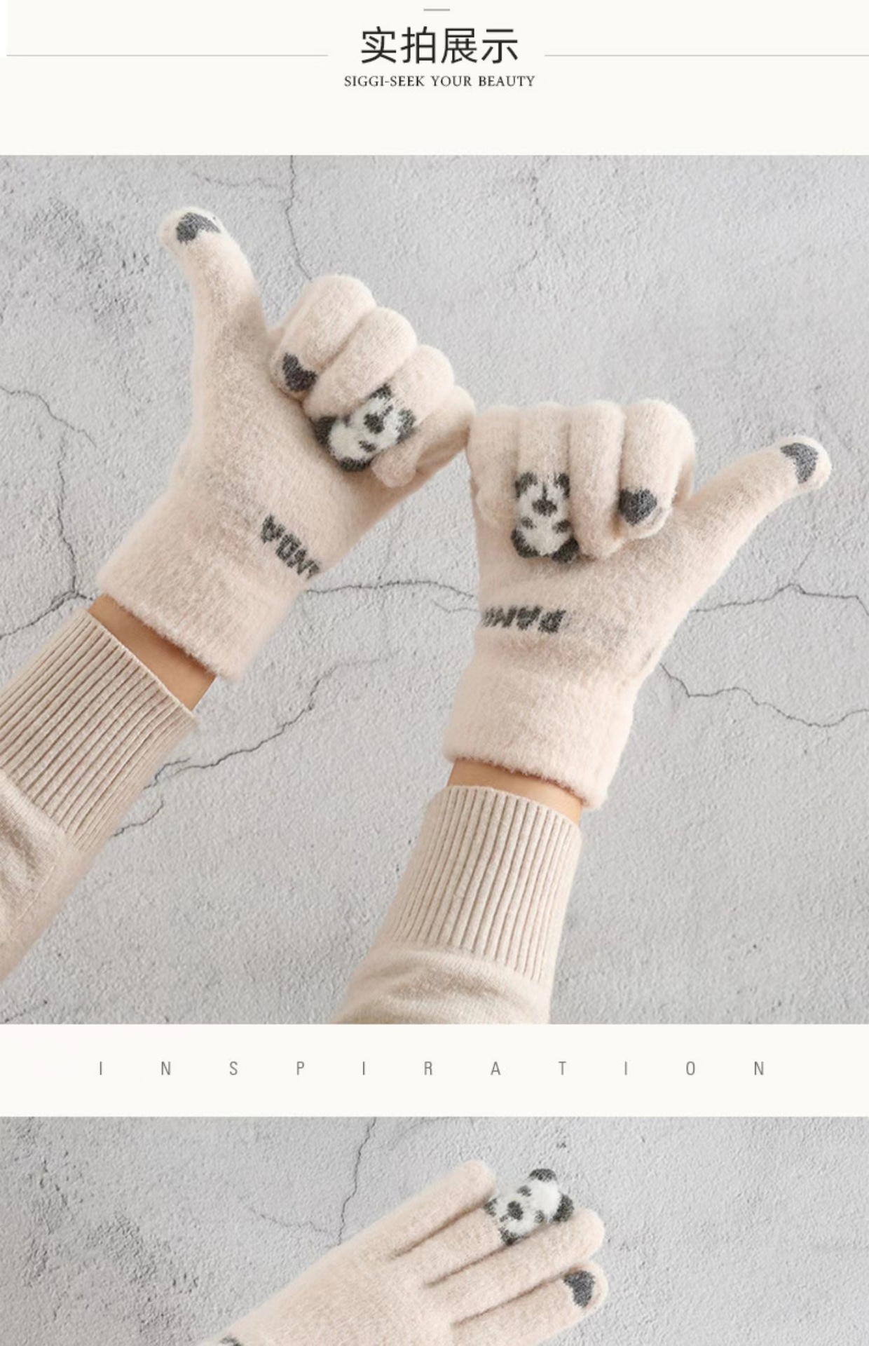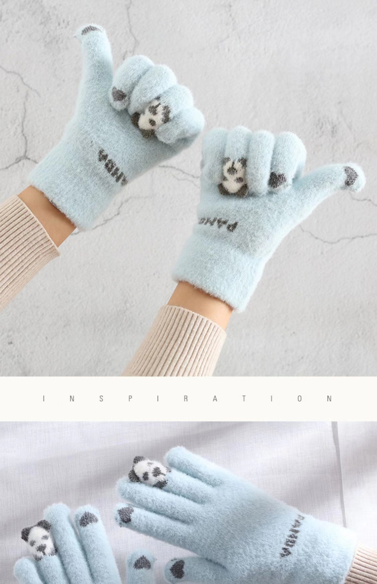 가을과 겨울 여성의 곰 손가락 장갑 한국식 다목적 니트 두꺼운 따뜻한 글쓰기 승마 터치 스크린 장갑스토어 가기