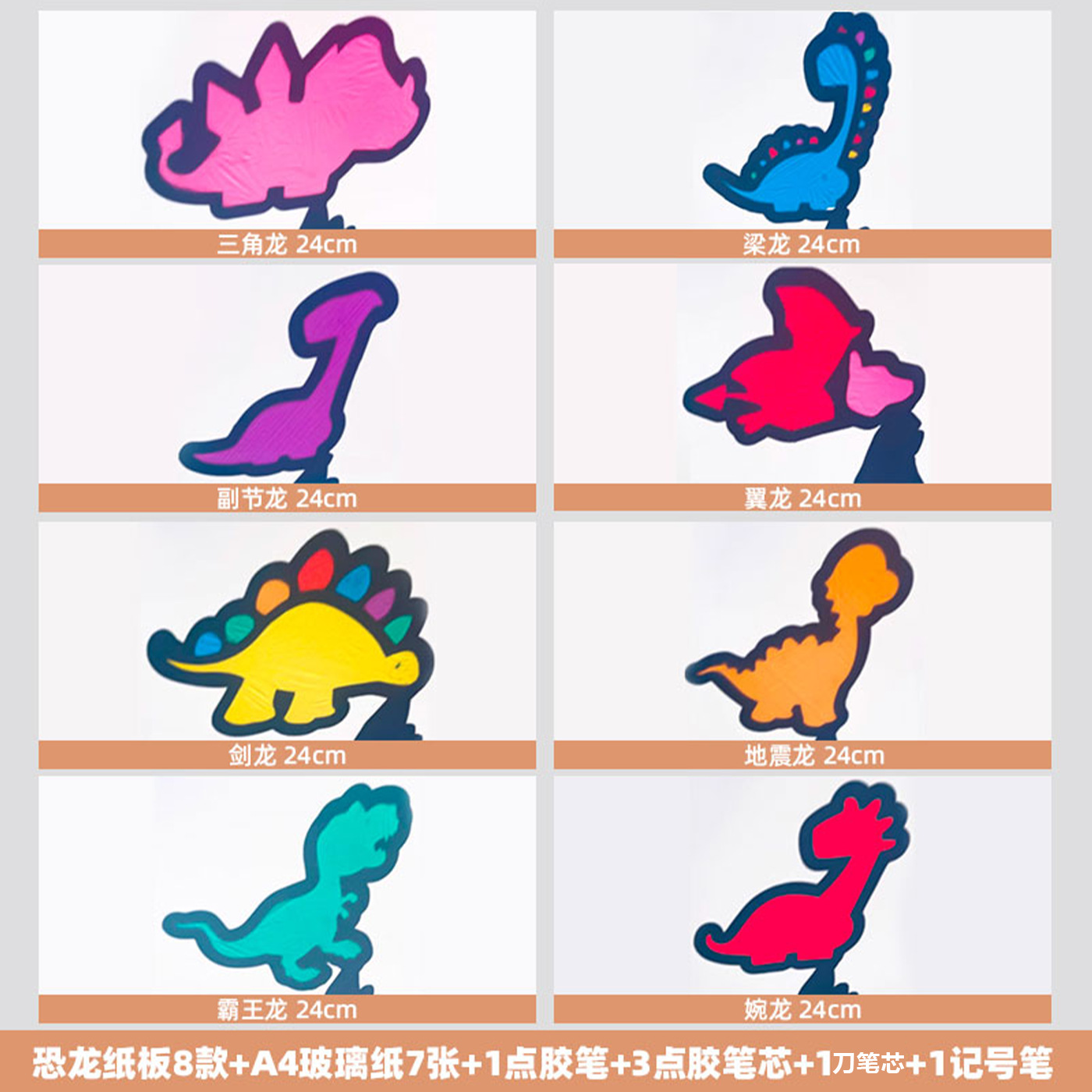 • -공룡 시리즈 판지 8종 + A4 셀로판 7장 + 디스펜스 펜 1개 + 디스펜스 리필 3개 + 펜깎이 리필 1개 + 마커 1개