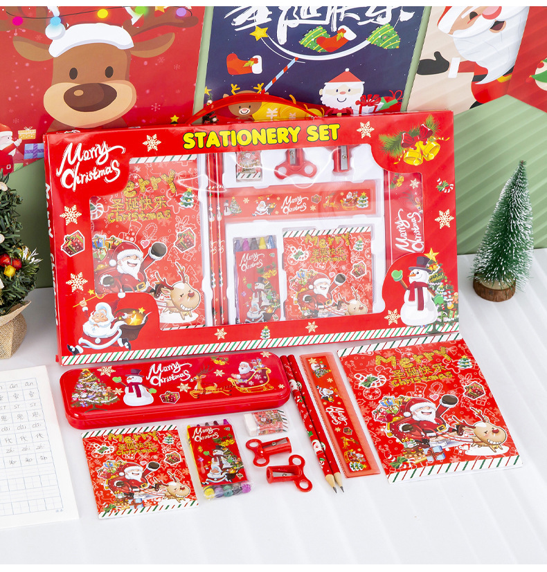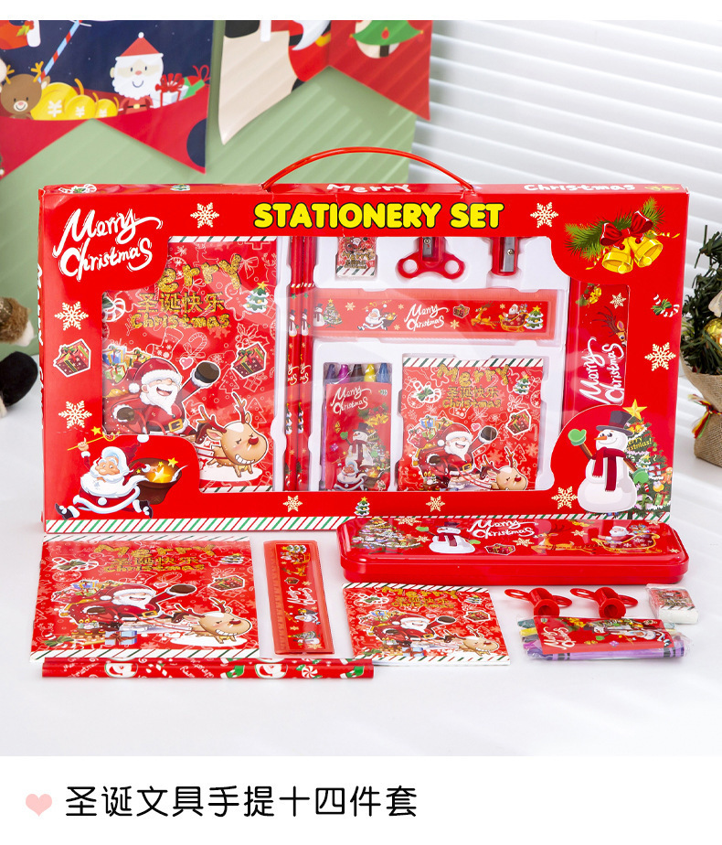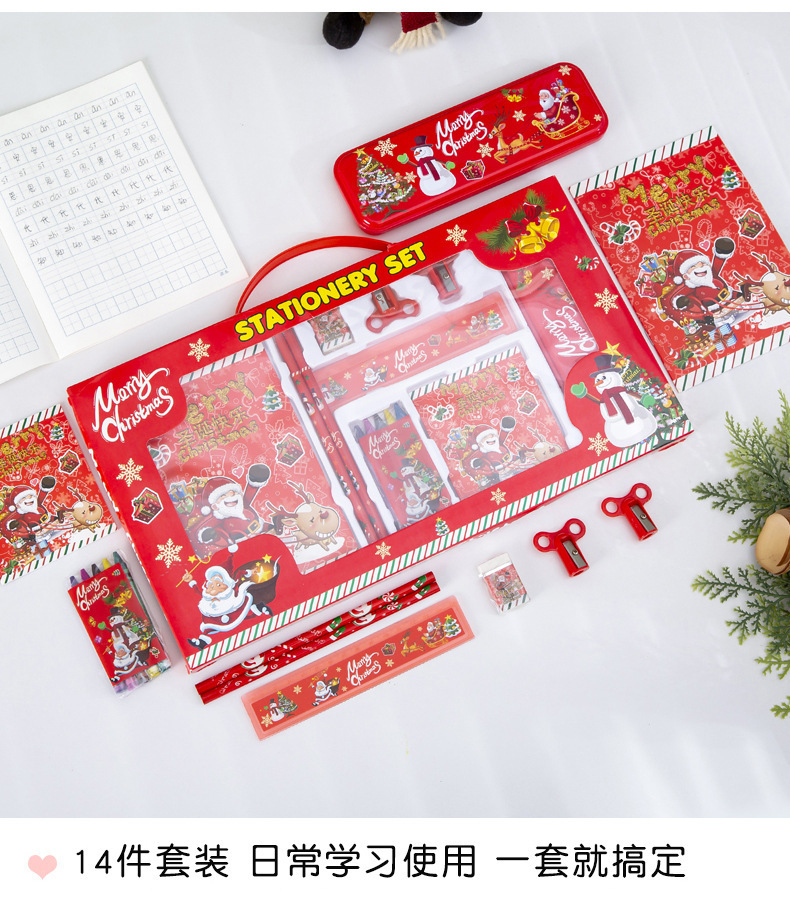 크리스마스 선물 어린이 학용품 휴대용 문구 세트 초등학교 선물 14 조각 세트 선물 상자