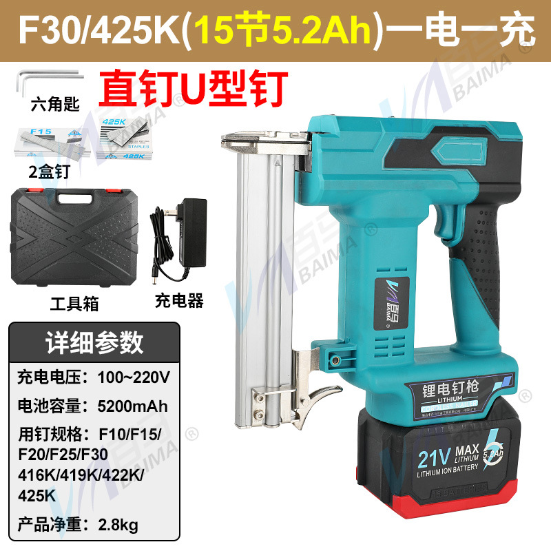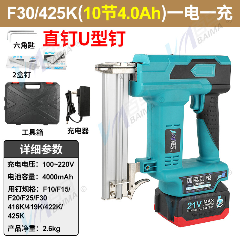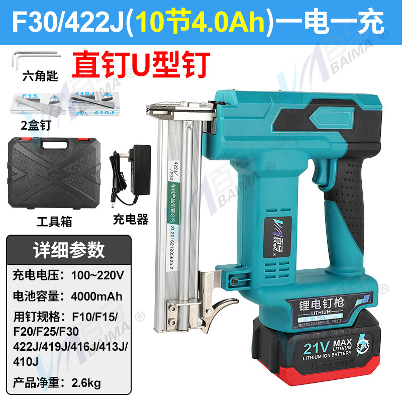 Baima 전기 네일 건 충전 F30 스트레이트 네일 건 422J 코드 네일 U 네일 목공 네일 브러시리스 리튬 네일 건스토어 가기