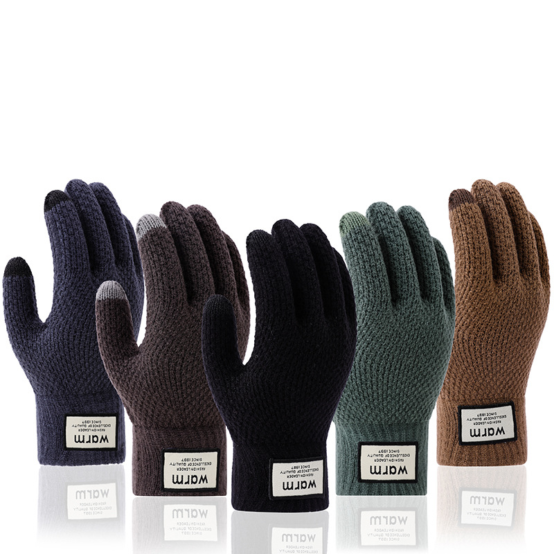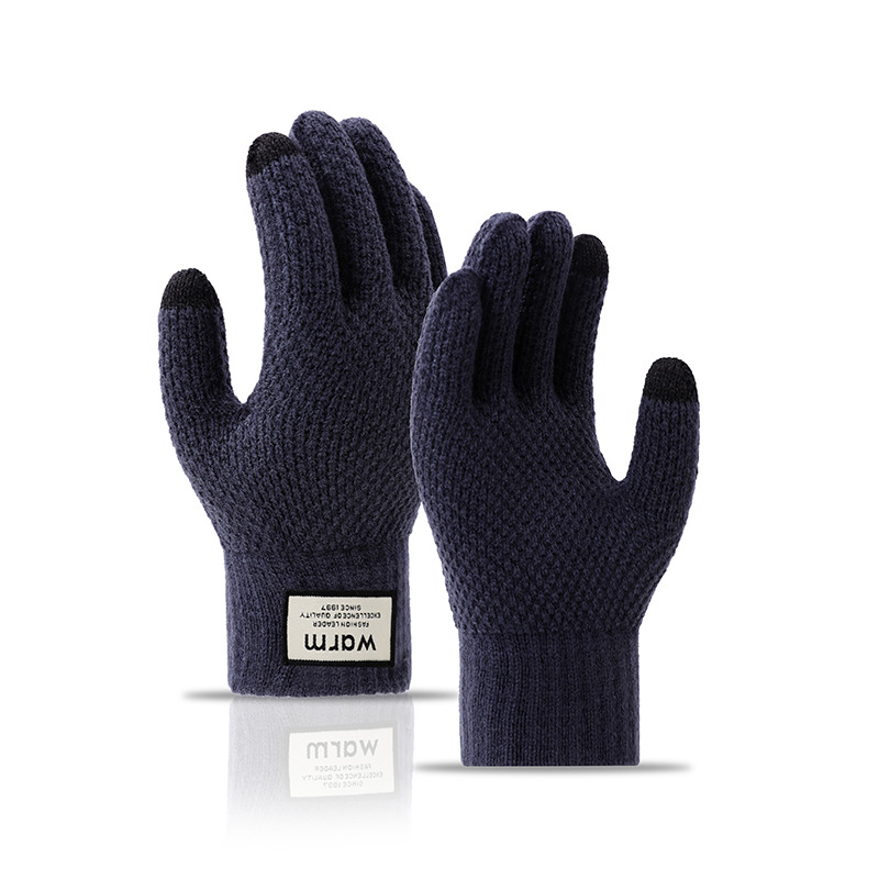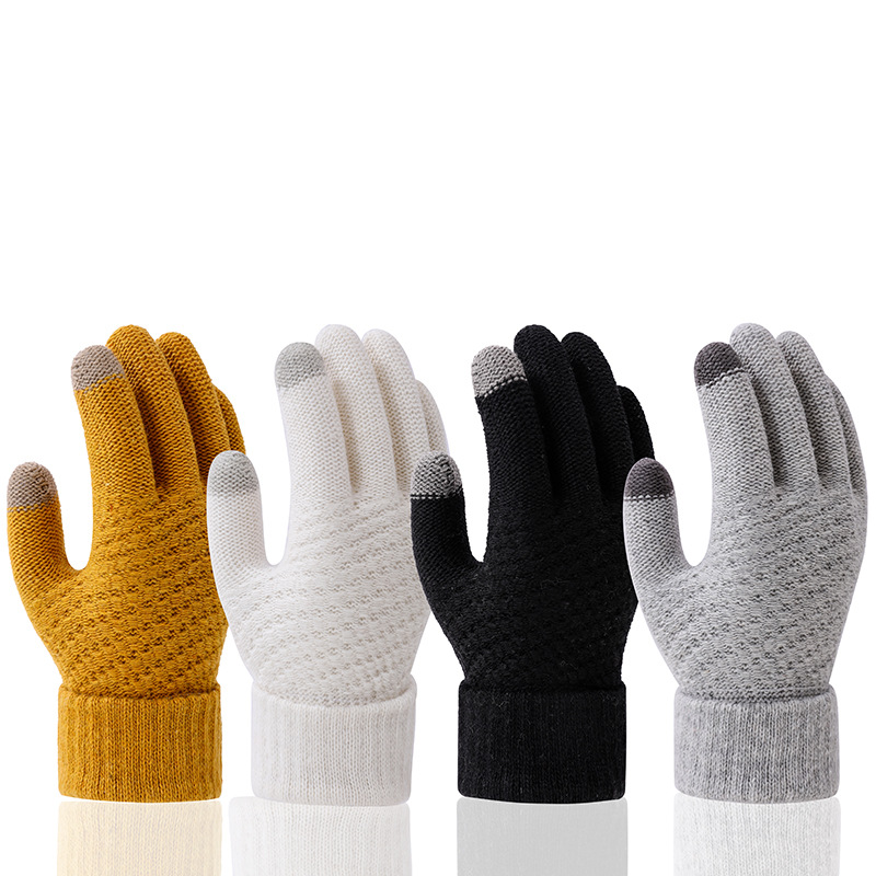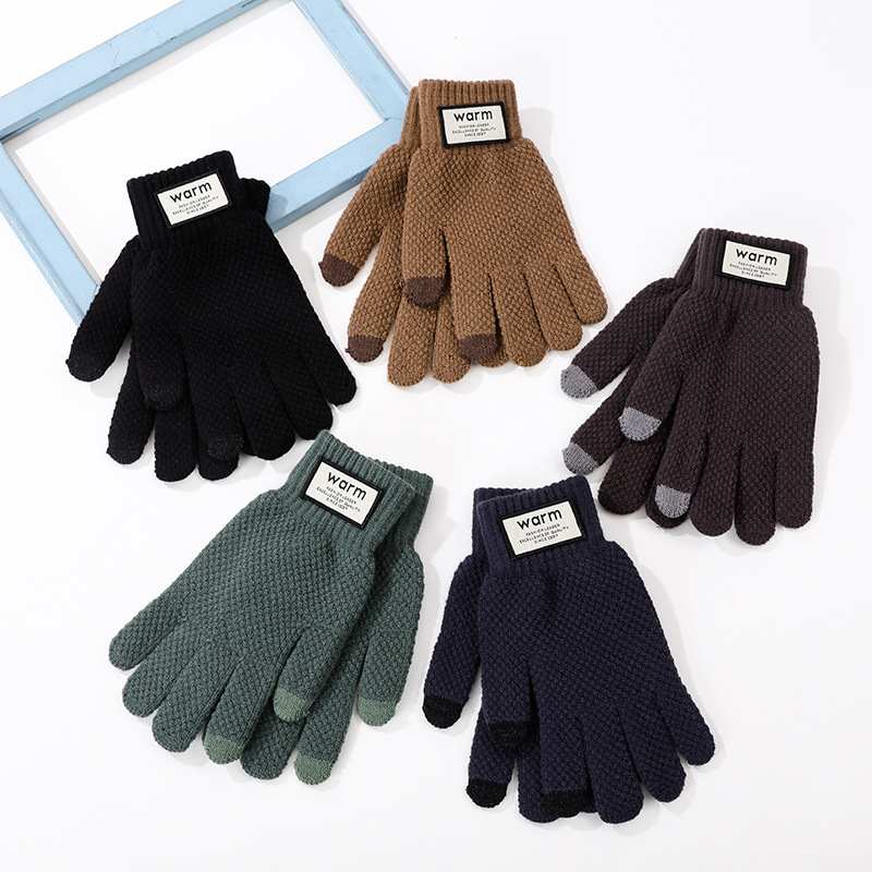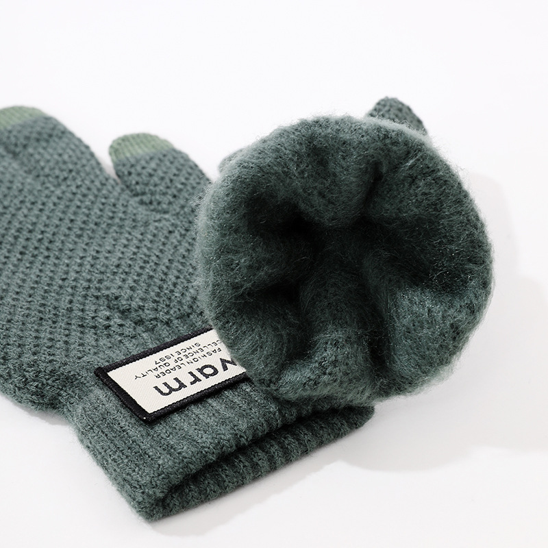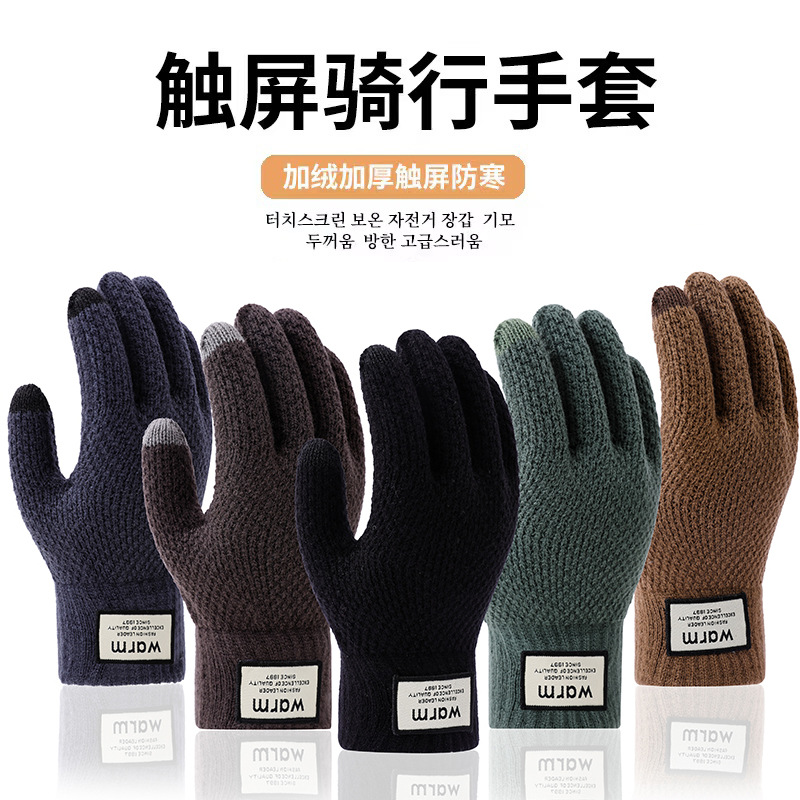 겨울 따뜻한 장갑 학생 한국의 간단한 남성과 여성의 기모 두꺼운 사이클링 다섯 손가락 터치 스크린 방한 면 장갑
