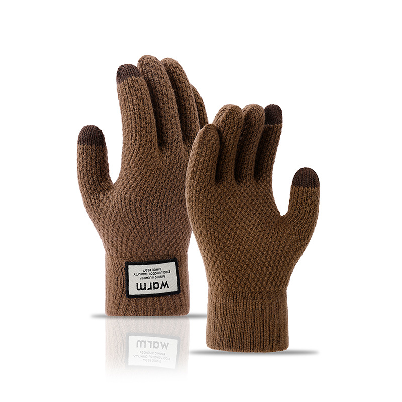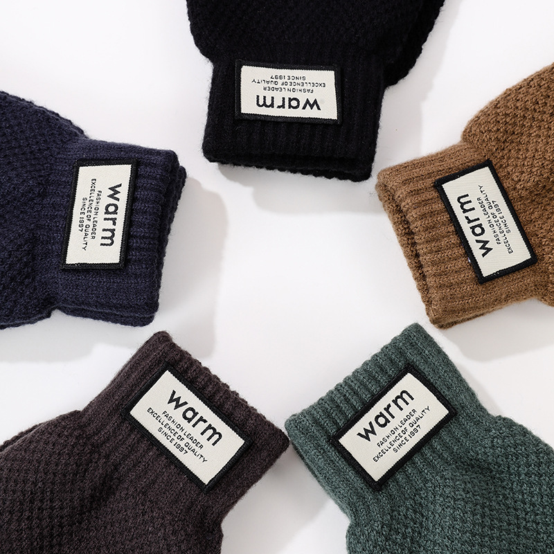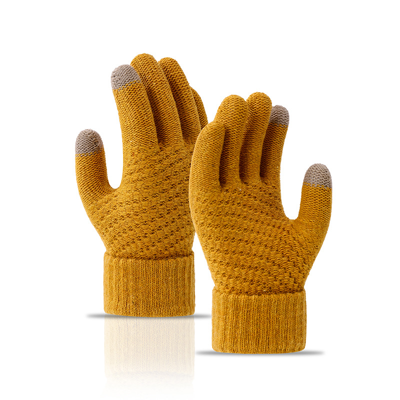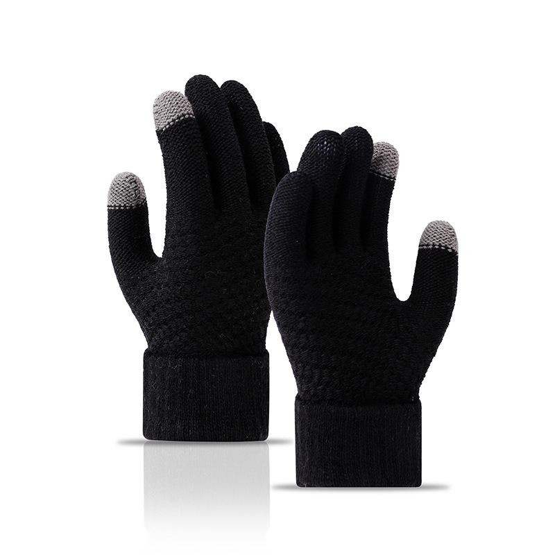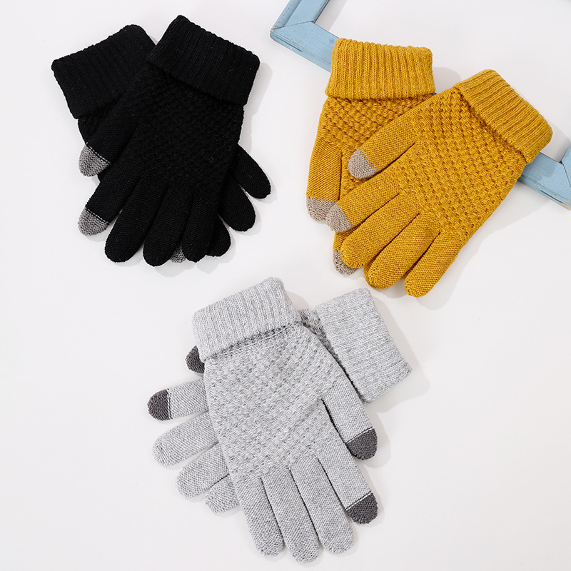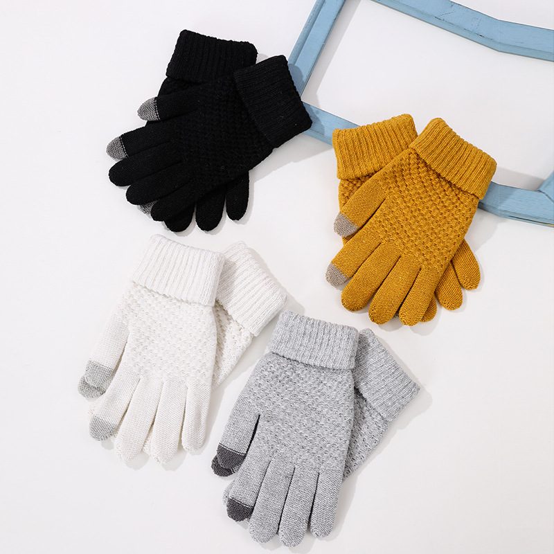 겨울 따뜻한 장갑 학생 한국의 간단한 남성과 여성의 기모 두꺼운 사이클링 다섯 손가락 터치 스크린 방한 면 장갑